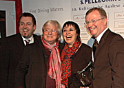 Es funkelten die Sterne... Allein fünf der nur neun Drei-Sterne-Köche Deutschlands reisten am 26. Januar 2009 zur Gala „Sterne, Stars und Spitzenköche“ ins Münchner Teatro. Rechnet man die vielen Zwei- und Ein-Sterne-Köche hinzu, dann „strahlten“ die Gäste genauso wie der Sternenhimmel von Schuhbecks Spiegelpalast. Joachim Wissler (Gourmet-Tempel Vendôme), Dieter Müller (Restaurant Dieter Müller), Sven Elverfeld (Deutschlands jüngster Drei-Sterne-Koch vom Wolfsburger Aqua), Harald Wohlfahrt (Schwarzwaldstube), Johann Lafer (Le Val d‘Or) und viele andere mehr feierten die Präsentation des Gastro-Wegweisers „Kulinarische Auslese“ von S.Pellegrino und Acqua Panna - und es war wie beim Familientreffen. 380 Kollegen und Freunde wurden mit Show und Gourmet-Menü vom Hausherrn Alfons Schuhbeck verwöhnt - dem frisch gekürten „Gastgeber des Jahres 2009“. Ein Titel, der dem Starkoch viel bedeutet, sagt er doch aus, dass viele Menschen sich bei ihm wohl gefühlt haben. Zum 10. Mal wurde außerdem der Titel „Bester Koch Deutschlands“ verliehen. Die Platzierungen ergeben sich aus einem neu berechneten Ranking aller Sterne, Punkte und Kochlöffel. Heraus kam ein „Best of“ der deutschen Spitzengastronomie, ein wertvoller Wegweiser für alle Genießer. Mitgefeiert haben auch prominente Feinschmecker: TV-Kommissar Miro Nemec, der sich freute, die vielen bekannten Köche endlich mal „live“ zu sehen; Erfolgskomponist Ralph Siegel, dessen Grand Prix-Hit „Theater“ Pate für den Eröffnungssong des „Teatro“ stand, mit Ehefrau Kriemhild im sehr kurzen kleinen Schwarzen; Schauspieler Christian Wolff und Ehefrau Marina, die Ski-Asse Frank Wörndl und Michael Veith, die beim traditionellen Ski-Rennen der Sternköche stets wertvolle Tipps geben („Hans Haas vom Tantris ist der beste Skifahrer“ so Veith), die Sportmoderatoren Dieter Kürten und Marcel Reif sowie Fußballweltmeister 1990 Andy Brehme mit schöner Ehefrau Pilar. Und noch einen Grund zu feiern gab es für Alfons Schuhbeck: Seine Dinnershow Teatro ist weiter auf Erfolgskurs. Bereits 23.000 Tickets wurden für die laufende Saison verkauft.