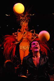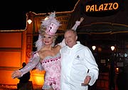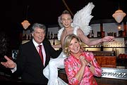 Wo fängt man an, einen rundum gelungenen Abend zu beschreiben? Vielleicht beim Gastgeber, Meisterkoch Alfons Schuhbeck, der ein köstliches Vier-Gang-Menü (Zander-Sauerkraut-Terrine, Rahmsuppe von bayerischen Flusskrebsen, Entenbrust und Schoko-Kaffee-Torte) servieren liess. Hier soll auch gleich das Personal von Service und Küche gebührend gelobt werden, denn ohne diese fleißigen Helferlein bliebe die Küche kalt. Jeden Abend müssen bis zu 328 anspruchsvolle Gaumen versorgt werden. Macht bei vier Gängen, ständigem Getränkeservice und Abservieren für jeden Ober pro Abend rd. 25 km (!) Fußmarsch. Und das pünktlich auf die Sekunde, denn der Mix aus Restaurant und Varieté ist bis in den letzten Lichtwechsel durchorganisiert. Womit wir bei den Künstlern sind, die für die Unterhaltung zwischen den Gängen zuständig sind: Chapeau für Akrobatikstars hoch in der Luft und für rasante Rollschuh-Artisten, die auf engstem Raum ihre Körperbeherrschung präsentieren. Applaus für den smarten Valentino, der jonglieren kann und gleichzeitig flirten. Und es sollte Rosen regnen über Chris, das Showgirl mit tausend Gesichtern.15 Kostümwechsel, Live-Gesang, die schönsten Beine Münchens und - in ihrer Verwandlung in die schrullige Berta - mit Mut zur Hässlichkeit. Aber: Surprise, Surprise - das Superweib ist ein Mann! Hinter falschen Wimpern, Perücke und Strass-Federn-Fummeln steckt Christian Kolonko, ein waschechter Augsburger. Die Illusion ist perfekt. Den Männern fällt ob soviel Sexappeal mehrmals am Abend die Kinnlade runter. Wahlweise wird gerätselt. Auch Kay Wörsching und Achim Neumann, als Ex-Wirte vom Promi-Lokal Kay‘s Bistro eigentlich mit geschultem Blick für die Stars dieser Welt versehen, tappten in die Chris-Falle. „Der Achim hat meinen Partner Joy Peters, der mit mir als Herta und Berta auftritt, gefragt: Sag mal, wie heißt denn dein Kollege?“, kichert Hauptperson Christian Kolonko nach der Vorstellung. Premierenabend, 21.37 Uhr - Zeit für Schumi‘s Boxenstopp bei Schuhbeck‘s Palazzo. Über 1 1/2 Stunden zu spät... Als ob Ralf und Cora Schumacher mit angezogener Handbremse von Salzburg zur Messe München unterwegs waren - fast wie in Ralfs vergangener Rennsaison. An Cora und etwaigem Styling-Stress kann es nicht gelegen haben, die Blondine trug Jeans und Shirt, die lange Mähne unter einer Strickmütze versteckt. Wahrlich kein Outfit für eine festliche Galapremiere von Ralf‘s Spezl Schuhbeck. Tja, dumm gelaufen, da hatten Cora & Co (es waren auch noch drei Begleiter mit im Gefolge) die erste Hälfte des großartigen Palazzo-Programms verpasst. Doch weil Schumi II und seine Gattin mit Hang zur Selbstdarstellung so gut wie nie an der Isar auftauchen, war den beiden ein großer Auftritt im Blitzlichtgewitter sicher. Zuvor hatten schon andere Promis, in großer Vorfreude auf den Abend, fleißig ihre Aufgabe auf dem roten Teppich erfüllt: Ralph Siegel mit Ehefrau Kriemhild (tapfer ohne Strümpfe im Mini-Dress), Michaela May und Ehemann Bernd Schadewald, die Volksmusikstars Marianne und Michael, Beauty-Doc Werner Mang (mit Ehefrau Sybille und Sohn Thomas), der das letzte Schokoflöckchen seines Desserts noch nicht verdaut hatte und schon zum Auto stürmte, Abi Ofarim (70 Jahre und ‘ne Matte wie ein junger Rockstar), Entertainerin Gloria Gray (zammg‘schnürt bis zum Luftwegbleiben), Augsburgs OB Dr. Paul Wengert, ein großer Fan von Chris, Komponisten-Tochter Yvonne Kálmán, die jetzt in Mexiko lebt, Juwelier Jens Schniedenharn und Martin Krug, beide Strohwitwer, weil die besseren Hälften Suzanne von Borsody bzw. Veronica Ferres, anderweitig zu tun hatten, DJane Giulia Siegel ohne Sitzfleisch, weil sie im schenkelkurzen Kleidchen ständig vom Tisch in Richtung Raucherlounge/Toilette/Bar schwebte (wir zählten mind. 8 Manegen-Durchquerungen), Starkoch Hans-Peter Wodarz, Strauß-Tochter Monika Hohlmeier, Gerhard Ohneis (Ehem. Augustiner Brauerei) mit Gattin Farida mit Federnkopfputz, SPD-Politiker Hermann Memmel und Edith von Welser-Ude. Gaby Hildenbrandt