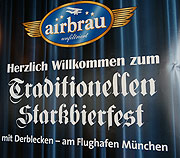Eine kleine Starkbier-Historie: Zwischen Fasnacht und Ostern versüßen sich die Bayern die karge Fastenzeit mit nahrhaftem Starkbier. "Erfunden" wurde das Starkbier 1634 von Paulaner Mönchen, die damals feststellten "Flüssiges bricht das Fasten nicht". So wurde fortan in der Fastenzeit das "flüssige Brot" gebraut, das beachtliche 7,5 % Vol. Alkohol (früher sogar bis zu 10 % Vol.) aufweist und einen Gehalt an Stammwürze von rund 18 %. Unter Stammwürze versteht man die Menge an löslichen Stoffen, wie z. B. verschiedene Zucker, Mineralstoffe und Eiweiß, die vor der Gärung in der Würze enthalten sind. Das Starkbier wurde zunächst "Heilig-Vater-Öl", "Herrenbier" und später "Sankt-Vater-Bier" genannt. Anfang des 19. Jahrhunderts entwickelte sich daraus der Name "Salvator", der sogar durch das Kaiserliche Patentamt geschützt wurde. Andere Brauereien erschufen in Anlehnung daran Namen wie Triumphator, Optimator oder eben, wie im Falle des Airbräu, Aviator. Das Starkbier des Airbräu hat 7,8 % Vol. Alkohol und einen Gehalt an Stammwürze > 18°. "My Heimat, my Europe, my Baum. Ja mei!. Freedom, Peace und Livercheese, damit präg