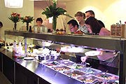 ![]() Gerne zeigt man Ihnen, wie das Fondue funktioniert ![]() alles kommt zuerst in den Topf, mit den Stäbchen kann man umrühren ![]() Großes Buffet ![]() frische Salate ![]() oder Gleisch, Fisch, Tofu... ![]() Natürlich auch Desserts ![]() oder auch mal Sushi, das Angebot wechselt immer wieder mal ![]() ![]() ©alle Fotos: Marikka-Laila Maisel |