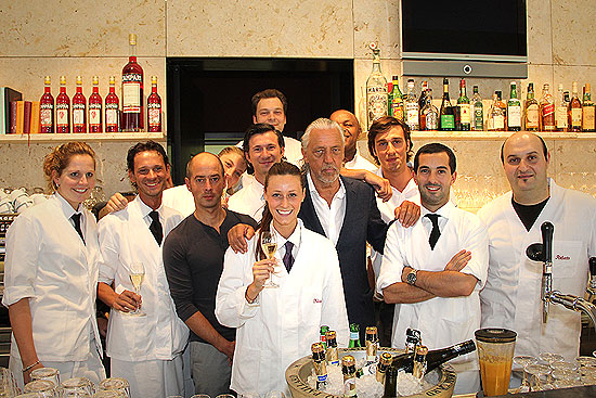 Charles Schumann mit Barcrew in Schumann's Tagesbar, Maffeistr.