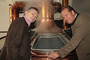 ![]() Paulaner Chef Andreas Steinfatt und Hermann Zimmerer, neuer Wirt des Paulaner Bräuhaus (re.) ![]() der erste Sud kocht schon ![]() Jürgen Schenk, Geschäftsführer Paulaner Bräuhaus Consult ![]() Kernstück: die beiden Braukessel im Sudhaus ![]() noch ist alles Baustelle ![]() der Biergarten wird nicht vor Ende Juni fertig ![]() ![]() ©alle Fotos: Martin Schmitz |