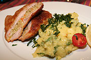 Für alle Schnitzelfans gibt es in München eine neue Anlaufstelle: der Schnitzelwirt im Spatenhof gleich links neben dem Haupteingang des Saturn in der Neuhauser Straße gegenüber dem Kaufhaus Oberpollinger bietet seit Ende April 2009 bayerisch-österreichische Küche in allen Variationen. Vier Monate Umbau, die der neue Pächter, Dr. Christian Winklhofer gemeinsam mit der Brauerei Spaten-Löwenbräu für die in die Jahre gekommenen Innenräume des Kellerlokals in Auftrag geben hatten, lassen die Gaststätte, die nun in neuem Glanz erstrahlen: weg vom angestaubten Charme der 80er hin zu modernem Wirtshaus-Ambiente. Der Gastraum wurde komplett erneuert, ebenso wie Küche, Schankanlagen und sanitäre Einrichtungen. Die WCs sind Handtrockentechnisch vom Feinsten: probieren sollten sie mal den Turbo Handtrockener von Dyson, wenn sie schon mal dort sind. Viele der Gäste werden es gar nicht wahrnehmen, denn bei schönem Wetter locken die Plätze auf der Freischankfläche mehr nach draussen auf der Neuhauser Straße, wo sich viele niederlassen, ohne zu wissen, was sie eigentlich hier für ein Lokal erwartet. Es kann sich sehen lassen, der neue "Schnitzelwirt im Spatenhof". Der Schnitzelwirt im Spatenhof besticht nun durch gemütliche Einrichtung in warmen Farben. Dass es sich um ein Münchener Lokal mit langjähriger Geschichte handelt, davon zeugen die zahlreichen historischen Aufnahmen an den Wänden. Da nach mehr als 20 Jahren Armin Stadler als Wirt des Spatenhofs in Ruhestand ging, wurde nun das Gastro-Konzept vom neuen Pächter des Spatenhofs umgesetzt: Dr. Christian Winklhofer und seine Frau Petra führen bereits seit 2001 sehr erfolgreich die Gaststätte „Hofer Der Stadtwirt“ nahe dem Münchener Marienplatz. Auch durch seinen familiären Hintergrund er stammt aus der Wirtsfamilie, die auch den „Ratskeller“ im Münchener Ratshaus betreibt ist Dr. Winklhofer für die Spaten-Löwenbräu GmbH ein Partner mit großer Kompetenz und Zuverlässigkeit. „Schnitzel ist weit mehr als ein paniertes Stück Fleisch! Wir wollen unseren Gästen die Vielfalt dieses Gerichts näher bringen und unsere Leidenschaft für originelle Küche mit ihnen teilen“, erklärt der neue Wirt. Der Schnitzelwirt im Spatenhof überrascht mit Schnitzelgerichten in allen Variationen: vom klassischen Wiener Schnitzel bis hin zur Piccata Milanese. Außerdem bietet der Schnitzelwirt auch vegetarische Gerichte und deftige bayerische Brotzeiten kurz: Alles, was zur bayrisch-österreichischen Küche gehört. Vom Preis her ist vielen bei 10,90€ oder knapp darüber auf der Karte: z.B. alle Schweinschnitzel wie Jägerschnitzel oder Pfefferschnitzel, oder Schnitzel "Wiener Art" (12,90 €) bzw.Braumeisterschnitzel - vom Schwein, gefüllt it Speck, Zwiebeln und Pilzen, dazu Bratkartoffeln (15,90€) . Ähnliches gilt für die Putenschnitzel, die es z.B. in schwarz-weißem Sesammantel mit Asiagemüse, Soja Ingwersauce und Basmatireis, als Putengeschnetzeltes oder als Putenschnitzel Hawaii mit Ananas belegt und Käse überbacken gibt. Ein richtiges Wiener Schnitzel vom Kalb mit Preiselbeeren und Pommes gibt es hier für 18,90€, Kalbsschnitzel in Madeirarahmsauce mit Kartoffelgratin und Brokkoligemüse zu 19,30 € und die Picata Milanese zu 16,50€. Daneben gibt es immer auch Fischgerichte und Vegetarisches, Nudeln und Pasta, Salate, Suppen und Vorspeisen auf der Karte, wie auch typischbayerische Brotzeiten und andere bayerische Speisen wie Original Münchner Weißwürst (pro Sück 2€). Dazu kommen täglich wechselnden Gerichte auf der Tagekarte. Dazu gibt es beste Biere vom Fass wie das Spaten Hell, Franziskaner Weissbier oder auch den Löwenbräu Urtyp in der Bügelverschlussflasche. Der Schnitzelwirt im Spatenhof bietet 130 Plätze im gemütlichen Gastraum sowie 130 Plätze auf der Freischankfläche inmitten der Münchener Fußgängerzone. Öffnungszeiten: Montag bis Sonntag von 9:30 Uhr bis 23:00 Uhr. Historie Gastwirtschaft hat im Spatenhof lange Tradition: seit Mitte des 19. Jahrhunderts befindet sich im Gebäude ein Gasthof. Vorher, von 1552-1845, wurde dort eine Brauerei betrieben, die seit 1668 als Brügelbräu bekannt war. 1901 erwarb die Spatenbrauerei das Gebäude. Am 25. April 1944 zerstörten Brandbomben das gesamte Anwesen. 1953 wurde auf vergrößerter Grundfläche das „Haus am Karlstor“ erbaut, wo am 22. Januar 1954 wieder eine Gaststätte unter dem Namen „Goldener Stern“ eröffnete. Seit 1974 gibt es den Spatenhof in der heutigen Form die Gasträume befanden sich zwar zunächst noch im Erdgeschoß, wurden dann aber in den Keller verlegt. Stand: Juli 2009 Schnitzelwirt im Spatenhof