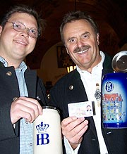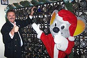![]() Hobräuhaus Wirt Wolfgang Sperger (li.) und Stammgast Roland Mack mit seinem Krug ![]() Europa-Park Chef Roland Mack muss dann auch selber spülen ![]() ![]() Auch die Gäste hatten Spaß mit der Weihnachts- Maus vom Europa-Park ![]() ©Fotos: Martin Schmitz |