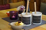 Das bewusst klein gehaltene, in der Speisekarte aufgelistete Kernangebot besteht aus einer Reihe von Pflanzerl-Variationen und zeitgemäß gekochter, bayerischer Hausmannskost. Hinzu kommen ausgewählte Tagesgerichte, die sich vom allmorgendlichen Marktbesuch ableiten. So bindet man sich nicht an ein vorgefertigtes Standardsortiment, sondern kann flexibel auf Saisonware reagieren und unterschiedlichste Produkte anhand der verfügbaren Menge und Qualität einplanen oder weglassen. Was sich die Kreativküche jeden Tag auf´s Neue einfallen lässt, finden die Gäste auf einer großen Schiefertafel wider. Zwickl