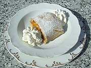 Der Apfelstrudel vom Café Gloria hat eine feine Apfelfülle umhüllt von hauchdünn gezogenem Teig. Wer gerne mehr Teig im Strudel hat, für den ist der gerollte Pflaumenstrudel das Richtige.