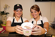 Dieser innovative Trend ist DIE gesündere, frische, leckere und leichte Alternative zu herkömmlichem Speiseeis, so die Botschaft. Frozen Yogurt sieht aus wie Softeis, enthält aber viel weniger Fett und gesunde probiotische Joghurtkulturen. Frozen Yogurt ist dank viel Softeistypisch viel Luft ind er Grundmasse leichter und cremiger als Eis und kann im „frogis frozen yogurt“ mit über 40 Toppings garniert werden je nach Geschmack. Da kommen Liebhaber von Erdbeerem Himbeeren oder Müsli genauso auf ihre Kosten wie Naschkatzen, die lieber schwarze Oreo-Kekse, Schokoladensauce oder Smarties mit ihrem frozen Yougurt kombinieren wollen. Oder saure Gummis, und diese brausegefüllten Esspapiertütchen. Den Preis bestimmt am Ende das Gewicht - nicht die Bechergröße oder die Auswahl der Toppings.“ Im Winter wird es bei 'frogis' auch warme Überraschungen und heiße Getränke 'togo' geben. Gourmondo.de wurde bereits 2002 von ehemaligen Amazon-Managern gegründet und ist heute Deutschlands führender Online-Shop für Lebensmittel und Wein. Auf die Idee kam sie bei einem Besuch ihrer Schwester, die im letzten Jahr in den USA einen Sprachkurs absolvierte (und ihr auch beim Start von frogis im frogis Shop hinter der Theke und an der Kasse hilft). Dort gingen irgendwie alle immer wieder zum Eis essen in Frozen Yogurt Shops, und sie fragte sichnach ihrer Rückkehr, ob so etwas nicht auch in Deutschland möglich sein könnte. Nach nächtelangem Austüfteln des Businessplans fiel im Februar 2011 die Entscheidung, das Unternehmen 'frogis frozen yogurt' zu gründen. Ihr frogis frozen yogurt ist leicht zu finden gleich neben den Rolltreppen, die auf der Seite Burger King zur Sonnenstraße aus den Stachus Passagen führen. |