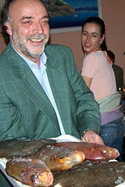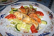 Gesagt, getan: in einem ehemaligen Lagerraum seiner Gero GmbH auf dem Schlachthofgelände entwickelte sich aus dem kleinen griechischen Imbiß durch Aus- und Umbau Barba Gero's Taverna, ein geräumige griechisches Lokal mit dezenter griechischer Ausstattung, welches mit rund 100 Plätzen nun auch Platz zu größeren Feiern bietet. Da schon in dem winzigen Imbiß-Lokal seinerzeit eher noch spontan griechische Live-Musik gespielt wurde, sollte dies künftig auch alle 14 Tage in Verbindung mit besonderen Gerichten ein fester Aktionspunkt im Lokal werden. Auf der Speisekarte fanden sich immer authentische griechische Gerichte, die keine weiten Wege hinter sich haben, sitzt man doch praktisch direkt an der Quelle, der Fisch hier z.B. war stets fangfrisch. Denn auf die Frische der Zutaten legte Herr Geromichalos, selbst ein ambitionierter Hobbykoch, allergrößten Wert. Hervorzuheben waren die ausgesprochen günstigen Preise, die von Salaten, warmen und kalten Vorspeisen bis zu Fleisch- und Fischgerichten reichten. Vorspeisen standen für 3 bis 6,50 € auf der Karte- Dolmadakia, gefüllte Weinblätter mit Tzatziki für 3,90 €; Salate von 2 bis 5,50 €; Gyros mit Tzatziki, gemischter Salat und Pitta Brot für 6,50 €, Scampi-Spieß in Knoblauch-Zitrone-Sauce mit Reis und gemischten Salat für 9,50 €. Gute offene Weine erhalten sie hier für günstige 2,80 - 3,40 €, ein gepflegtes Helles 0,5 l von Löwenbräu gibt es für 2,40 € In der offenen Schauküche konnte der Gast bei der Zubereitung seines Essens zuschauen. Die Standardkarte bot eine Auswahl griechischer Vorspeisen, fangfrische Fische, Garnelen und andere Meeresfrüchte, aber auch typisch griechische Fleischgerichte. Darüber hinaus wurde auf Vorbestellung Zicklein und Lamm vom Holzkohlengrill zubereitet. Der Eintritt auf das Schlachthofgelände war für jedermann und jederzeit möglich; das Parkplatzangebot ist riesig. Barba Gero's Taverna ist von Mo. - Fr. von 10:30 Uhr bis 23:00 Uhr (bei Bedarf auch länger), jeweils am 1. Samstag im Monat ab 10:30 Uhr sowie die restlichen Samstage ab 17:00 Uhr geöffnet. Sonntag ist Ruhetag. In der angeschlossenen Niederlassung der Firma Gero GmbH kann der Besucher sämtliche griechischen Spezialitäten erwerben (von 9.00 17.00 h). Darüber hinaus betriebt Herr Geromichalos einen Catering- und Veranstaltungsservice. Es ist übrigens nicht sein erstes Lokal: Ioannis Geromichalos eröffnete bereits im Juli 2004 als Besitzer der Gero GmbH und als Importeur von Fisch- und Fleischspezialitäten sowie Wein, das „Alexander“ in Deisenhofen. Barba Gero's Taverna Hinweis: Im Herbst 2006 finden wir das Barba Geros geschlossen |