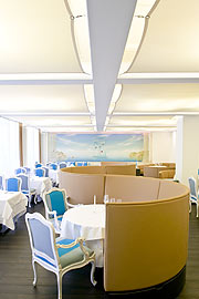 Der Tiroler Architektin Brigitte Gattringer gelang es, im Rahmen der neuntägigen Neugestaltung des Münchner Acquarello Gaumenerlebnisse mit Hilfe von hochwertigen Zutaten in Raumatmosphäre mit mediterraner Leichtigkeit umzusetzen. Edle Natursteine, dunkle Hölzer, warme Stoffe, handgefertigte weißgekalkte Stühle aus Florenz und faszinierende Lichtspiele stehen für unaufdringlichen Luxus. Gleich im Eingangsbereich ist die eigens angefertigte Bar aus Onyx-Stein ein echter Blickfang. Der aus Brasilien stammende, teuerste Marmor bildet den Unterbau der Bar. Eine besondere Attraktion ist ein Mosaik am Boden bestehend aus 12.000 per Hand verlegten Steinen. Das speziell angefertigte klimatisierte Weinregal mit seinen 300 Flaschen trennt den Eingangs- und Barbereich vom Essbereich. Mediterrane Elemente wie Vollholzdielen aus geräucherter Eiche, die an einen Steg erinnern, von der Decke hängende Segel, Wellenformationen sowie das in warmen Gold-Ocker Tönen und einzelnen Akzenten in Aquamarin gehaltene Farbkonzept, spiegeln den Entwurfsleitgedanken wider: „Fast spürt man sie, die sanfte, salzige Meeresbrise.“ Seit mittlerweile 15 Jahren ist Mario Gamba erfolgreicher Gastgeber seines italienischen Gourmetrestaurants Acquarello in München. Im Jahr begrüßt er dort etwa 23.000 Gäste. Mit seinem 22-köpfigen internationalen Team mit Mitarbeitern aus Deutschland, Österreich, Frankreich und natürlich Italien präsentiert er seinen Gästen die Cucina del Sole die Sonnenküche. Mario Gamba legt sehr viel Wert auf beste Zutaten, daher bezieht er diese von 70 ausgewählten Lieferanten. Mario Gamba und sein ausgezeichnetes Restaurant Acquarello Seit 2000 ist das Restaurant Acquarello mit einem Michelin- Stern ausgezeichnet. Die Zeitschrift "BUNTE" kürte Mario Gambas Genusstempel zum „besten Italiener ganz Deutschlands“, und der Gault Millau zählt das Acquarello zu den 100 besten Restaurants der Welt, was im Jahr 2008 ebenfalls vom US-Magazin Forbes bestätigt wurde. Aus der italienischen Kochtradition heraus hat Mario Gamba eine leichte, raffinierte und zugleich ungekünstelte Küche entwickelt, die er seit 1994 seinen Gäste in einer entspannten und eleganten Atmosphäre anbietet. Jedoch experimentiert der gebürtige Mailänder auch gerne jenseits der „alta cucina“. Französische Einflüsse aus der Provence verleihen seinen mediterranen Gerichten oft eine außergewöhnliche Note. Mario Gamba im ersten vollverglasten Unterwasser-Restaurant der Welt Erst kürzlich holte sich Mario Gamba mit einem Besuch im ersten vollverglasten Unterwasser-Restaurant der Welt neue Ideen: Das „Ithaa“, das im April im Hilton Maldives Resort & Spa auf den Malediven eröffnet wurde, bietet eine völlig neuartige kulinarische Stilrichtung, die eigens für das fünf Meter unter dem Meeresspiegel liegende Restaurant kreiert wurde. Bei der „Euro-Maledivische“ Fusion Küche werden lokale maledivische Gewürze und traditionelle Aromen wie z.B. „Githeyomirus“, eine Art Kirsch-Pfeffer, mit westlichen gepaart, was zu einer zeitgenössichen maledivischen Küche führt. Wer weiß, vielleicht bietet das Acquarello bald italienische Gerichte mit maledivischem Einfluss. - |