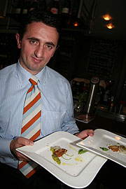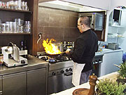 Zentral am Isartorplatz und doch versteckt in einem ruhigen Innenhof hat Patrone Bedri Müller im März 2008 sein „Il Piccolo Ristorante dei vini“ eröffnet. Für die authentischen italienischen Köstlichkeiten sorgt Chefkoch Giuseppe aus Sizilien in der offenen „Showküche“. Die große Weinauswahl mit Schwerpunkt Italien, ein edles Ambiente und der zuvorkommende Service von Herrn Bedri Müller garantieren einen unbeschwerten Aufenthalt. Am Isartorplatz, direkt an der Strassenbahnhaltestelle der Linie 17 u. 18, in einem lichten Innenhof, liegt Il Piccolo sehr zentral und doch ruhig. Eine herzliche Begrüßung, ein erster Blick auf die kleine Vitrine mit Delikatessen aus Italien auf der Bar, eine Empfehlung von Koch Giuseppe - und der Gast fühlt sich schon fast in wie Rom. Eine Speisekarte gibt es nicht. Alle Speisen werden auf einer Tafel an der Bar angezeigt, auf der täglich drei bis vier Gerichte stehen. Antipasti: z.B. gefüllte Babyananas mit Garnelen in einer Erdbeer - Zitronensauce für 9,80 €, Pasta: z.B. Tortelloni mit Trüffelfüllung in leichter Mascarponecremesauce von 8,0018,00 €, Fisch: z.B. Loup de Mer im Kaviarmantel zwischen 15,00 30,00 €, oder ein Fleischgericht für 15,00 30,00 €. Menüs mit drei bis vier Gängen sind im Il Piccolo gängig und sehr gefragt. Dabei taucht auch mal ein ausgezeichnetes bayerisches Rindsfilet auf der Tafel auf. Selbstverständlich bildet immer ein Dessert den süßen Abschluss des Menüs. Die ausgezeichnete Essensqualität rechtfertigt das gehobene Preisniveau in jeder Weise. Doch am liebsten hat es der Patrone und Giuseppe, wenn der Gast zu ihm an den Herd kommt und in die Töpfe schaut. Dadurch sind auch individuelle Speisekreationen möglich. Dann empfehlen sie italienische Antipasti, hausgemachte Pasta mit Trüffel, Jakobsmuscheln oder Kaviar und all die anderen Leckereien, die den Besuch beim Edelitaliener zum Dolce Vita auf höchstem Niveau machen. Die Gäste vertrauen oft den Ideen von Giuseppe, der dann aus den vorhandenen frischen Zutaten von bester Qualität seine Überraschungsmenüs zaubert. Er weiß, was er seinen Gästen schuldig ist, die einen kultivierten Lebensstil zu schätzen wissen. - Il Piccolo Ristorante dei vini: die Weine (mehr) |