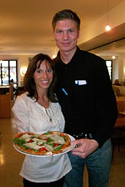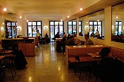 Das Viertel hinter der Münchner Freiheit war schon immer eine kleine Welt für sich mit ganz eigenen Zielgruppen, was die kulinarischen Attraktionen betrifft: der Klassiker Drugstore, die Cocktail Bar Peaches, die besten Döner bei Mamas Kebab Haus... Gute Pizza gab es nur im Stehen in der Drugstore Pizzabar. Lange wurde an den Feilitzschhöfen in der Feiltzschtraße / Ecke Wedekindplatz gebaut, renoviert und saniert, in die jetzt nach und nach Mieter und Geschäfte einziehen, wie die Constantin Film oder der neueste Club der Fitness-Company. Im zu den Feilitzschhöfen gehörenden historischen Brauereigebäude an der Feilitzschstraße entstand ein Wohn- und Geschäftshaus mit 73 Wohnungen, ergänzt durch ein Alten- und Servicezentrum und einige Gewerbeeinheiten. Hier im Herzen Schwabings, wo Brecht, Corinth, Rilke, Ringelnatz, Thomas Mann oder Wedekind lebten und arbeiteten, gibt es seit Ende Januar 2006 nun auch gastronomisch etwas zu neues berichten: Die „beste Pizza der Stadt“ gibt es fortan nicht nur im legendären riva im Tal sondern auch bei ihrer "kleinen" Schwester in der Feilitzschstraße. Mit einer Fläche von über tausend Quadratmetern und einer riesigen Terasse ist die neue riva bar pizzeria ihrer großen Schwester zwar haushoch überlegen Philosophie & Style des riva bleiben jedoch in der Familie : Das riva - Synonym für italienische Authentizität. Die erfahrenen Betreiber Rudi Kull, Hans-Jürgen Hartauer und Michael Mirz setzen auf kulinarische Originale : Ein Mix aus frischen qualitativ hochwertigen Zutaten, südländischem Temperament und der typisch-italienischen Leichtigkeit. Rudi Kull, Preisträger des Leaders Club Award Preises 2004, sieht den Trend ganz klar im Angebot von „Wellness-Food“. Eine Innovation des riva sind beispielsweise die „riva-light“ Pizzen : Statt schwerem Edamer Käse wird grundsätzlich fettarmer und geschmacklich exzellenter Mozzarella verwendet. Progressiv-moderne Pizza Kompositionen, wie die „Sushi-Pizza“ (ohne Käse, mit mariniertem Thunfischcarpaccio mit asiatischen Aromen und Wasabi, 11,30€) oder die „Pizza Vitello Tonnato“ (ohne Käse, mit feinem Kalnscarpaccio, Thunfischcreme und Kapern zu 9,75€) findet man, neben der traditionell hausgemachten Pasta und Sugo, ebenfalls im neuen riva. Los geht es bei den Pizzen preislich bei der Pizza Margherita (6,50€), die o.g. Sushi Pizza Riva sowie die Pizza Anatra (mit geräucherten Entenbrustscheiben auf rischem Radiccio & Trüpffelöl, 11,25€) stellen preislich das obere Limit dar. An der Wand auf den Spiegel geschrieben finden sich wechselnde Tagesspecials, die so nicht auf der Karte zu finden sind, wie z.B. am 18.01.2006 "Pizza mit Spinatcreme" oder "Fusillo mit Schinken-Käse Sauce" zu je 6,90€. Die Pizza kommt aus dem blau-weiß gekachelten Holzofen, das darin flammende Buchenholz stammt aus einheimischer, naturgemäßer Forstwirtschaft mit Herkunftsgarantie, weist die Speisekarte hin. Abgerundet wird die vielseitige Auswahl an Pizzen durch exzellente süditalienische Weine, ein attraktives Frühstücks-angebot, dem wunderbar-italienischen Cappuccino und den leckeren riva Dessert-Klassikern. Innenarchitektonisch gelang es den Münchner Architekten Arnold/Werner (entwarfen und planten auch den kurz zuvor eröffneten Club Neva in den Maximilianshöfen und die 2005 eröffnete EDMOSES Bar in der Prinzregentenstraße) im neuen riva ein „Urlaub-am-Meer-Feeling -mitten in Deutschland“ zu inszenieren: Die kühlen Farben des Meeres treffen auf pures helles Holz im Strandhaus-Stil. Liebevolle, italienische Details geben der lässig-unbekümmerten Aufgeräumtheit mit den hohen Decken und den lichtdurchfluteten großen Fenstern Wärme und Persönlichkeit.