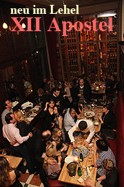 Eine große Party sollte es zeigen: nimmt München das Konzept XII Apostel Restaurant an? Der Abend des 17.03.2011 war als Eventtermin kritisch, zeitgleich präsentierte Audi den neuen A6 mit Thomas Gottschalk, die Damischen Ritter samt Fonsi luden zum Starkbieranstich in den Löwenbräukeller, die Early Evening Lounge bei JAB Anstoetz, im Filmcasino eine 3D Premiere von LG, und und und... Es war vielleicht die beste Party des Abends, die hier direkt am Thierschplatz, zentral im Münchner Lehel stattfand. Denn München hat nun ein XII Apostel, angesiedelt im nagelneuen Bürokomplex Lehel Carré, das sollte gefeiert werden. Beim Eintreffen um 23.00 Uhr volle Hütte, rund 800 Gäste sollen an dem Abend gekommen sein, hieß es, ein Abend-Feeling wie seinerzeit im legendären "La Piazetta", welches Büroräumen der Bayerischen Landesbank weichen musste und der Nahrungskette des Münchner Nachtlebens bis um 4 Uhr morgens als letzte ordentliche Verpflegungsstation diente. By the way, das XII Apostel hat auch bis 4.00 Uhr morgens geöffnet, warme Küche gibt es allerdings nur bis 03.00 Uhr, verrät das "XII Apostel Giornale", das am Eingang ausliegt und eine unterhaltsame Form der Speisekarte darstellt.