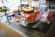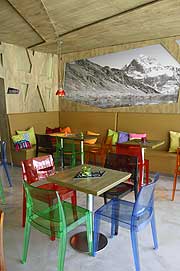 Wenn Beate Schmelzer die bonbonfarbenen Stühle hinausstellt und die großen Sonnenschirme öffnet, hält so manch einer gerne inne, um auf der einladenden Holzterrasse einen Espresso zu trinken und den Vorbeigehenden nachzuschauen, die zur S-Bahn eilen oder Besorgungen machen. Dann lehnt man sich zurück und lässt die fröhlich-entspannte Atmosphäre der Location und das sonnige Lächeln der Wirtin seine Wirkung tun. Das Schmelzer’s ist die Relax-Oase schlechthin in Gröbenzell, mit seiner extravaganten Einrichtung, die in Eigenregie entstand. „Die üblichen Ladenbau-Module haben uns nicht gefallen“, meint Beate Schmelzer. Kurzerhand wurde ihr Mann Betreiber der im gleichen Gebäude befindlichen Glaserei und einige Gröbenzeller Handwerker selbst aktiv. Das Ergebnis kann sich sehen lassen. Die Mischung aus markanten Holzelementen, beschwingten Designerstühlen, pastellfarbenen, auf den Wandbänken verstreuten Kissen und dem wandfüllenden Bergmotiv in melodramatischem Schwarz-Weiß hat Charme. Kultige Campari-Soda-Lämpchen setzen rot glühende Akzente und die Bar ist golden! Kaum zu glauben, dass hier vor anderthalb Jahren noch ein Geschäft für Einrichtungs-Accessoires und Geschenkartikel zu Hause war. Auch das hatte Beate Schmelzer betrieben, doch dann hatte sie eine bessere Idee. Zugute kam ihr dabei eine langjährige Gastronomie-Erfahrung. „Mit dem Schmelzer’s füllen wir eine echte Marktlücke hier in Gröbenzell“, freut sich die sympathische Gastronomin, die hier vom Verwöhn-Frühstück über frisch gekochtes Mittagessen bis zum feinen Gläschen Wein ein feines Rundum-Lecker-Programm anbietet - kleiner Plausch inbegriffen! Schmelzer’s Tagesbar + Café die Küche „Gestern gab’s total schöne Bohnen, da hab’ ich Bohneneintopf gemacht“, schwärmt Beate Schmelzer. Im Schmelzer’s kommt kulinarisch garantiert keine Langeweile auf. „Ich denke mir jeden Tag aus, was ich koche, und kaufe nach meinem Hormonspiegel ein“, schmunzelt die Wirtin. Die impulsive Frische-Küche, die es immer montags bis freitags im Schmelzer’s gibt, kommt an. Dann gibt es Pasta oder Reis, ein oder zwei Cremesuppen und zwei Salate. Das sieht dann zum Beispiel so aus: Kartoffelsuppe (4,50 €), Auberginen-Thunfisch-Sauce auf Pasta (6,90 €), Risotto al Funghi (6,90 €), Sommersalat mit gegrillten Zucchini und Feta (7,90 ,€) und Mittelmeersalat mit Garnelen (7,90 €). Außerdem sind hinter der Glastheke appetitliche Kuchen der Confiserie Nessbach & Schwalber und frische Früchte drapiert, knusprige Croissants und frisches Brot stehen ebenfalls bereit. Noch dazu wartet zum guten Start in den Tag ein umfangreiches Frühstückssortiment, darunter einige italienische Varianten, zum Beispiel Prosciutto Cotto, Oliven und pane (6,90 €). Auch echt französisch kann man frühstücken, zum Beispiel mit Croissant, Café au lait (4,50 €, mit Confiture fraise und Butter 5,50 €). Zu den klassischen Frühstücksangeboten zählt ein leckerer Frühstücksteller mit gekochtem Schinken, Käse, saisoneller Marmelade und Brotkörbchen (6,90 €) ebenso wie Biovital-Vollkornbrot mit Frischkäse der Saison (4,50 €). Und natürlich gibt’s auch English Breakfast: Orange marmalade, butter, bread basket and a pot of tea (6,90 €). Extras wie Spiegeleier gibt’s auf Wunsch dazu. Kleine Snacks wie Croissants oder Tapas-Teller bekommt man ebenfalls. Zur sympatischen Getränkeauswahl gehören Biosäfte und -schorlen, Carpe Diem Kombucha und Almdudler. Das Mineralwasser kommt von Plose, Biergenießer dürfen sich auf Tegernseer Hell und die Bioland-Spezialität Viva Bavaria von Riedenburger aus der Bügelflasche freuen. Die Weine stammen vom burgenländischen Weingut Schmelzer. Kaum zu glauben: die Namensgleichheit ist reiner Zufall! Text: Barbara Euler Schmelzer’s Tagesbar + Café - Lokale von A - Z (Liste aller hier vorgestellten Restaurants, Bars & Clubs) |
