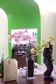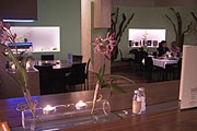 Sofia's Lunch & Lounge heißt ein neues Lokal in Nordschwabing / Neu-Freimann, das Ende 2005 bereits eröffnet wurde. Das neue Lokal liegt in einem Neubauviertel im Parkstadtcenter Schwabing, die Alfred-Arndt Straße ist eine Abzweigung der Domagkstraße in die Parkstadt Schwabing, gleich beim Kaum zu übersehenden ParkHotel Schwabing. Das Parkstadt Center im Hintergrund bietet bequeme Einkaufsmöglichkeiten bei großen Filialen von miniMal, dm, Penny Markt, Vinzenzmurr und der Bäckerei Wimmer, außerdem eine Apotheke und als Highlight, optisch wie kulinarisch, das neue Sofias Lunch & Lounge. Die Wirte Sofia Liosi und Georg Kokkinos haben hier etwas wirklich Besonders auf die Beine gestellt, ganz unerwartet in der Lage und trotzdem mit dem Auto oder Bus von der Münchner Freiheit aus in 5 Minuten erreichbar. Das Sofia's gefällt durch ein äußerst ansprechendes modernes Ambiente. Sein anspruchsvolles und ästhetisches Design lädt den Gast förmlich ein, hier einzukehren. Sofias Lunch & Lounge ist im äusseren Bereich zum Parkcenter hin tagsüber Stehcafè und Bistro, nach Schließung der Geschäfte am Abend wird das Center ganz einfach durch eine anprechende Milchglas-Wand abgetrennt. Im inneren Bereich stossen sie gleich im Eingangsbereich auf eine kleine, bequeme Lounge mit einer schicke Sesselgruppe. Daneben eine einladende Bar, und der großzügeig eingerichtete Restaurantbereich. Stilvolle Holzdekorationen und die wechselnden Farben der Barbeleuchtung runden den einladend warmen Charakter des Lokales ab. Praktisch in der Umgebung mit seinen vielen Büros und Firmen, wie z.B. auch münchen.tv gleich nebenan sind zwei Tische mit Hochstühlen, die pro Sitzplatz auch über einen Steckdosenanschluß verfügen. Da kann man seine Arbeit gleich mit ins Lokal nehmen ind er Mittagspause, ohne dass einem der Saft am Laptop ausgeht. Mit WLAN kommen sie hier natürlich auch ins Netz, ab Febraur 2006 steht ist alles soweit eingerichtet. Auf zwei großen Flatscreen Monitoren können sie bei Bedarf Fußballspiele oder ähnliches verfolgen, ein Tipp jetzt schon zur bevorstehenden WM. Sobald es schön wird wettermäßig, kann das Sofias die Türen öffnen auf einen vorgelagerten Wirtsgarten, in dem rund 60 Personen Platz finden. Hier wurde richtig investiert, mit viel Geschmack und stilsicher hat Innenarchitekt Wolfgang Gruschwitz, der u.a. auch die Markenwelt des FC Bayern und von 1860 München in der Allianz Arena gestaltete, auch hier eine augezeichente Arbeit abgeliefert. Auf einer kleinen Bühne darf man auch in Zukunft Musikveranstaltungen, Parties und spezielle Events erwarten. In diesem geschmackvollen Ambiente können Sie stets frisch zubereitete Highlights der mediterranen und internationalen Küche genießen, und das zu äußerst vernünftigen Preisen. Dazu gibt es die gepflegten Löwenbräu- und Franziskaner-Biere. Auf der Mittagskarte findet der Gast werktags zwei Menüs, jeweils bestehend aus Suppe, Hauptspeise und Nachtisch, für 5,90€ bzw. 7,90€. Ganz besonders empfehlenswert sind auch die Pizzen auf der Karte (je 5,90€) Für die ausgesprochen delikate und gut Küche sorgt Chefkoch Johann Höflinger (44), ein geborener Grazer, der schon im Münchner Aubergine und in der Resdenz in Aschau gewirkt hat und im Laufe seiner Karriere 12 Goldmedaillen erkochte, darutner 2 Goldmedallioen auf der Grüpnen Woche in Berlin. Weinliebhaber finden eine Auswahl ausgesuchter Weine und an der Bar erfüllt man gerne jeden Cocktailwunsch. Zudem gibt es täglich das "Ladies Special" - allen Damen wird ab 17.00 bis 22.00 Uhr jeder Longdrink zu 3,50 € und alle Cocktails zu nur 4,90€ serviert! (ausser bei Events und Parties). Selbstverständlich verpackt man den Gästen auch gerne alle Gerichte zum Mitnehmen. Darüber hinaus bietet das Sofias auch einen Catering und Partyservice. Das Parkstadt-Center hat übrigens 400 Parkplätze, so daß auch einer Anfahrt im Auto nichts entgegensteht. 1 Stunde parken ist dort kostenlos, wirbt der Flyer des Centers. Sophias Lunch & Lounge - die Speisekarte (mehr) |
