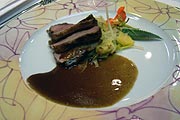 - Barbarie Entenbrust mit Sesamthymianhonigsoße Safranreis und Gemüsebouquet, 10,60 Euro