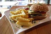 Doch neben den beliebten Klassikern der Standardkarte versteht Mathias Hille es, seine Gäste immer wieder mit den Specials auf seiner Tageskarte zu überraschen – zum Beispiel einem saftigen Cheeseburger aus reinem Arizona Beef mit knusprigen Pommes frites (8,90 €). „Für ein Weinlokal ist das ungewöhnlich, aber die Gäste lieben es!“, freut sich der sympathische Gastronom.