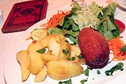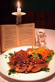 Kennen Sie Kwas? Was sind Pelmeni oder der Honigberg? Wer war Eugen Onegin und was hat er mit Mozart und Salieri zu tun? Bei einem Besuch des Ende 2007 neu eröffnete Restaurant Puschkin in München Schwabing (Ecke Luisenstraße / Schellingstraße) konnte man sie netdecken, die die feine russische Küche und ihre vielfältige Kultur. Mit der Eröffnung des russischen Restaurants Puschkin, dem genialen Dichter des 19. Jahrhunderts gewidmet, brachte uns der junge Deutschrusse Roman Bendig die russische Esskultur näher. Er war immer persönlich für seine Gäste da, während seine Mutter in der Küche die Köstlichkeiten zubereitete (Archiv: das Lokal wurde Anfang 2010 geschlossen). Die russische Küche hat weit mehr zu bieten als Borschtsch. Im Restaurant Puschkin gibt es ihn zu € 4,50. Da sind einmal die Pelmeni, gekochte und mit Hackfleisch und Zwiebeln gefüllte Teigtaschen (8 Stück € 5,00), die gebratenen Piroschki mit Kartoffelpüree und Zwiebeln oder mit Weißkraut gefüllt (2 Stück € 4,50) oder die Bliny, dem Pfannkuchen ähnlich, traditionell mit Fleisch gefüllt oder mit Pilzen von € 4,00 bis € 6,00. Es sind vor allem traditionelle Gerichte, die im Restaurant Puschkin serviert werden. Als Hommage an den Dichter wurden diese oft nach seinen Lebensorten und Werken benannt. Es gibt raffinierte Salate mit so schönen Namen wie Muse mit Äpfel, Gurken, Karotten und frischem Kohl mit einer Zitronensauce für € 4,50 u.v.a. Puschkins Werk Eugen Onegin steht Pate für einen Salat mit Schrimps, Reis, Eier, Karotten, frische Gurken und dem Hausdressing für € 7,50. Bei den Kalten Vorspeisen finden wir Die Meerjungfrau, Heringsfilet, Gemüse und Dörrpflaumen für € 3,90 oder Zarskoje Selo Lachskavier mit Bliny, Butter und Zitrone für € 11,00. Welch verschlungene Wege manchmal die Namensfindung ging, zeigt das Gericht Mozart und Salieri Rinderzunge mit Dörrpflaumen, Rosinen und Buchweizen mit einer süß-sauren Sauce und Salat für €15,40. Roman Bendig erzählt, dass Puschkin in seinem Stück das Thema Intrige und Rufmord verarbeitete. Puschkin selber starb 1837 bei einem Duell, in das er sich durch Gerüchte treiben liess. Wer „Kotelett nach Kiewer Art“ bestellt, wird überrascht sein. Hier verbirgt sich eine zarte und saftige panierte Hühnerbrust, mit einer feinen Buttersauce, Kartoffeln nach Puschkin-Art und Salat. € 13,90 Boulette à la Pozharski, das sind Fleischpflanzerl vom Huhn mit Reis und Salat für € 7,90 stehen auf der Standardkarte genauso wie das Beef Stroganoff für € 17,00. Der Honigberg, in Russland auch bekannt als Chak Chak, ist hierzulande ein ungewöhnliches Dessert € 3,50. Die dünnen, frittierten und mit Honigsirup überzogene Teigsstreifen lassen sich wunderbar zum Tee wegknabbern. Kwas ist gesund und eine alte russische Spezialität. Gesund, bekömmlich und wohlschmeckend, ist es die Alternative zu den normalen nichtalkoholischen Getränken. Seit Jahrhunderten wird Kwas aus Roggen und Malz mit Hilfe der Milchsäuregärung hergestellt und ist mit einer Vielzahl an Vitaminen und Mineralien der ideale und gesunde Durstlöscher. Das brauereifreie Puschkin bietet neben vielen guten Bieren aus Deutschland auch verschiedene Sorten vom russischen Bier Baltika und Obolon an. Bei den Weinen sind besonders die georgischen, mit ihrem typischen Charakter zu beachten. Lassen Sie sich beim Wodka von Roman Bendig beraten. Sein Tipp für die kalten Nächte: Vodka Nemiroff honey pepper. Macht warm ums Herz und stark wie ein Bär. Für die Schlemmer gibt es jetzt noch eine echte, heiße russische Schokolade. Die stilvolle Einrichtung versetzt die Gäste in die Ära der russischen Zaren. Zuletzt war an der Ecke Schelling-/Luisenstrasse eine italienische Trattoria. Nach dem Umbau, bei dem viele Freunde mithalfen, ist ein behagliches russisches Restaurant entstanden. Viel Holz und roter Samt, die moosgrünen Wände, übrigens eine typische Puschkinfarbe, Bilder, von Ikonenmalern extra für das Restaurant Puschkin gemalt und das Kerzenlicht zaubern eine besondere Atmosphäre. Gar wie in einem Märchen von Puschkin fühlt man sich im kleinen holzgetäfelten Separee. Der Raum ist dem orientalischen Zelt aus dem „Goldenen Hahn“ nachempfunden. Man sitzt hier gemütlich am Boden auf bequemen Kissen und lauscht der angenehm ruhigen Musik oft sind das russische Schlager aus den 30ern. Und wie es sich für ein Kulturrestaurant gehört, wird im Puschkin auch live musiziert. Ein antiken, gerne aber auch bespielbares Klavier steht im raum, und wird gerne angenommen. Es überzeugt, das Puschkin. Auch und gerade der deutsche Gaumen findet hier eine Vielzahl vorzüglich zubereiteter Gerichte, von denen bei Russen, die mit uns am Tisch saßen, spontan "wie zu Hause bei Mutter zubereitet" einfiel als Kommentar, besser kann man es gar nicht bwerten. Das Puschkin ist ein Nichtraucherlokal mit 50 Sitzplätzen, einer kleinen Bar und einer überdachten Terrasse für 20 Gäste. Für Familienfeste, geschlossene Gesellschaften und stimmungsvolle Weihnachtsfeiern kann das Puschkin jederzeit gemietet werden. Einige Termine