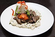 ![]() ![]() ![]() Meze und Lavas als Vorspeisen ![]() Çupra Izgara - frisches Doraden Filet vom Grill mit Gemüse ![]() Karniyarik (gefüllte Auberginen) ![]() Lamm auf Reis ![]() Lammkotletts ![]() Baby Calamari ![]() Künefe ("Engelshaare") als Dessert |