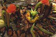 ![]() ![]() ![]() in Tongefäßen kommen die Gerichte in den Holzofen ![]() Zur Eröffnung erfreuten sich die Gäste an einem großen Buffet ![]() ©alle Fotos: Martin Schmitz |