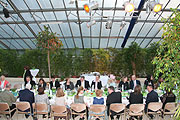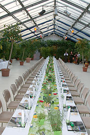 In die geheimnisvolle Welt von Thymian, Melisse, Lavendel, Kresse und Pfefferminze ging es diesmal für die Teilnehmer an „taste-Moments“. Die Direktoren Richard Mayer und Jörg Grede und Küchenchef Jörg Michael - das Dreigestirn des Viersternehauses Maritim München - hatten zu einem Abend im Kräutergarten eingeladen. Wobei sich der Kräutergarten in den Gewächshäusern des Botanikums (Feldmochinger Straße 75 - 79) befand. Eine lange Tafel für rd. 100 Gäste - eingedeckt in weiß und grün und umgeben von Bäumen und Grünpflanzen aller Art. Wieder einmal machte das Genießerkonzept (ausgezeichnet mit dem begehrten Fizzz-Award) seinem Namen alle Ehre. Drei Kräuter-Pädagoginnen aus Strasslach-Holzhausen verrieten einige Geheimnisse um die schon lange bekannte Wirkung der Kräuter. Der Trend, die blühenden Landschaften auch zu essen, findet immer mehr Fans. So kann man seinen ganzen Haushalt mit Kräuterprodukten (Seife, Liköre etc) ausstatten und tut dabei seinem Körper etwas Gutes.