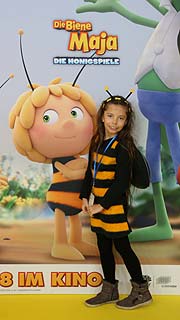 Im Münchner Mathäser Filmpalast wurde am Nachmittag des 25.02.2018 die Deutschlandpremiere von der berühmte Bienen Maja mit rund 1.700 Gästen im Stuttgarter Gloria und im Münchner Mathäser Premiere. Die großen und kleinen Fans belohnten die beiden Produzenten Thorsten Wegener (Studio 100) und Ulli Stoef (Geschäftsführer Studio 100 Media und m4e) sowie Jasna Vavra (Universum Film), aber ganz besonders auch die Sprecher Jan Delay (Willi), Andrea Sawatzki (Kaiserin von Summtropolis), Uwe Ochsenknecht (Alfons Graf von Bienenstich der Dritte) und Theresa Zertani (Biene Maja) mit tosenden Applaus. Unter den begeisterten Premierengästen befanden sich u.a. Jerome Boateng, Nina Bott, Judith Williams, Victoria Mayer, Antoine Monot, Jr., Sina Wilke, Elna-Margret zu Bentheim, Maximilian Allgeier, Lars Riedel, Tiger Kirchharz, Nina Eichinger, Charlotte von Oeynhausen, Friedrich Liechtenstein, August Zirner und Joey Grit Winkler.