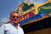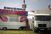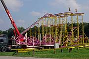 die "Wilde Maus" ist schon ziemlich weit mit dem Aufbau vorangeschritten, gegenüber steht bereits der Wagen des "Euroskooter" von Franz Kollmann, der nach 1999 und 2000 jetzt zum 3 Mal mit seinem ziemlich neuen und modernen Skooter auf der Wiesn steht. Manfred Schauer beaufsichtigt die Baufortschritte seines "Varieté Schichtl", die freizügige Dame samt Wagen des "Fliegenden Teppich" wird manövriert, und der "Eurostar" hat seinen ersten Looping zusammengesetzt.
