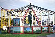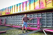 Der Rotor steht schon, ich muß mich mal schlau machen, was das ist. Noch offen im Aufbau: die Krinoline, in der zweiten Bildreihe sieht man den Euroskooter von Franz Kollmann im Aufbau, am Sonntag entfaltet sich der hier noch kompakte Skooter dank einer Hydraulik. Stromnetze, Lämpchen, alles ist bereits in dem kompakten Ding enthalten, das Sie hier sehen. In der letzten Reihe nochmals Rotor, sowie das Laufgeschäft "Fahrt zur Hölle". Schön zu erkennen hier noch ist die Containerbauweise.