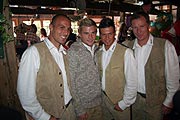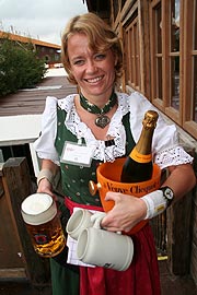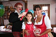 Manche Mamis mit ihrem fidelen Nachwuchs blieben dann doch lieber zu Hause, Erkältungswetter. Doch das war noch lange kein Grund, den nun schon fast traditionellen "Käfer's Kinderwiesn" Termin zu versäumen, zu dem seit 10 Jahren schon zahlreiche Mamis (und Papis) prominenterer Herkunft mit ihrem Nachwuchs von Andrea Schoeller und Sabine Käfer in das Obergeschoß der Käfer Schänke eingeladen wurden. Eine Einladung, bei der man man ausnahmsweise trotz Promi Status nicht kostenlos teilnehmen konnte, sondern brav am Eingang fürs Essen und die Getränke zahlen durfte, mit einem Aufschlag, denn es ist ja eine gar nicht mal so unbeliebte Charity Veranstaltung, zu der man zu so früher Stunde geladen wurde. Deren Erlös geht in diesem Jahr an die gemeinnützige Kinderhilfsorganisation "Children for a better World", die ihrerseite das Projekt Refugio unterstützt. Refugio ist in München die einzige Facheinrichtung für traumatisierte Flüchtlingsfamilien, die Hilfe aus einer Hand anbietet. Die Eltern erhalten Integrationsberatung, Psychotherapie und Elterntraining, die Kinder werden durch Einzeltherapie und Kunsttherapiegruppen an Schulen und Kunstwerkstätten in den Gemeinschaftsunterkünftn gefördert. Für 11 Kunsttherapiegruppen an 6 Münchner Haupt- und Gesamtschulen mit ca. 7-10 Kindern werden in diesem jahr noch dringend Spender gesucht. Die Kosten für eine Gruppe betragen im Jahr 2.900 €. Das bedeutet, dass schon mit 25 € pro Monat jedem dieser Kinder geholfen werden wird, einen gesunden Weg aus Krieg und Flucht zu finden. Die Resonanz auf die Einladung war beeinduckend: trotz schlechten Wetters fanden die meisten der angemeldeten 100 Erwachsenen it ihren fast 120 Kindern den Weg in die Käfer Schänke. Das Prinzip der Veranstaltung ist einfach: Die geladenen Gäste tragen durch ihr Kommen zur Unterstützung einer Einrichtung für Münchner Kinder bei. Die Gäste mit ihren Kindern zahlen für die Käfer Kinderwiesn eine Pauschale und können dafür köstliche Käfer Wies'n Schmankerl, Getränke und ein buntes Unterhaltungsprogramm mit Kinderchminken, Basteln und toller Performance geniessen. Michael Käfer stellt die gesamte Verköstigung sowie Dekoration etc. Der Kindersender JETIX (empfangbar über Premiere) sorgte mit zwei echten Power Rangers und weiteren Attraktionen wie kleinen Geschenken für noch mehr Spaß. Desweiteren gabs von Haribo und Steiff viel Süßes und Give-Aways für den Heimweg. Die Clowns Ronaldo & Servariono sorgten für Heiterkeit, und das Kinderschminken erfreut sich nach wie vor bei den Kleinern großer Popuarität. Wie jedes Jahr wird nach der Kindewiesn zur großen Freude der Kinder ein Erlebnisausflug ermöglicht. 2006 dürfen die Kinder von Refugio auf Einladung des Vereinsgeschäftsführers Stefan Reuter auf dem Trainingsgelände des TSV 1860 München mit den Fußball Stars trainieren, auf Fanartikeln Autogramme sammen, das Internat der Nachwuchsspieler besichtigen und vieles mehr. Die Käfer Kinderwies´n wurde auch dieses Jahr von der PR-Agentur Schoeller & Von Rehlingen organisiert. Zu Beuch u.a. Nika Schottenhamel in eigener Mutter & Kind Tracht mit Tochter Desirée 83), die im Vorjahr mehr schlagefend als wach, 2006 jedoch ganz rege am Geschehen teilnahm, Moderatorin Dr. Sabine Piller mit Tochter Giulia, TV-Moderatorin Stefanie Ludwig mit ihren zwei Kindern, Ex-Ariola-Chef Monti Lüftner mit Tochter, Maren de Martino (geb. Müller-Wohlfahrt) mit Tochter Sophia, Diddi und Marion Küffer mit Tochter (später sah man beide beim Filser Wiesn Schiessen - der Tag ist lang...), u.v.a.m. - Oktoberfest 2006 - 25. Filser Wiesn Schiessen am 19.09.2006 (mehr) - Oktoberfest 2006: Frühstück bei Tiffany und auf der Wies'n am 16.09.2006 (mehr) - Wahrlich.... vom 16.09.2006 Oktoberfest Anstich im Schottenhamel (mehr) - Startseite Oktoberfest Special (mehr) |