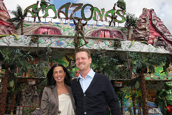 Es war der längste Fluss der Erde, der das Schaustellerpaar Angelo Agtsch und Miriam Blume zu ihrem Laufgeschäft inspirierte: der Amazonas, der 6.400 km lange, riesige Strom Südamerikas. Einige Jahre vergingen von der Idee (2005) bis zur Premiere auf dem Münchner Oktoberfest im September 2010. „Wir haben immer wieder Neues ausgetüfftelt, Effekte und technische Verbesserungen eingebaut“, erzählt Inhaber Angelo Agtsch. „Und dass ich als Münchner Schausteller das „Amazonas“ gerade zur Jubiläumswiesn in München präsentieren kann, macht mich schon stolz“. Die Kombination eines klassischen Laufgeschäfts mit lebenden Tieren ist weltweit einmalig! So begeben sich die Besucher auf drei Stockwerken in einen tropischen Regenwald und treffen dabei auch auf seine tierischen Bewohner: Schlangen, Skorpione, Spinnen, Piranhas und Geckos krabbeln, schwimmen und schlängeln sich im Erdgeschoss des „Amazonas“. Zum Glück hinter Glas, es braucht also niemand Angst zu haben.