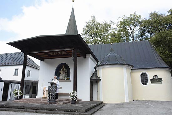 ![]() Georg, Renate und Tochter Daniela Heide entzündeten die Kerze ![]() Pater Matthäus predigte ![]() die Wiesnwirte versammelten sich zum Gebet und Gesang ©Fotos: Ingrid Grossmann |