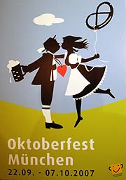 Alljährlich gegen Ende Januar werden die Münchner kurz daran erinnert, daß das Oktoberfest sich nähert. Noch hat der Vorverkauf von Bier- und Hendlmarken nicht begonnen, oder wenigstens noch nicht wirklich, da wird schon das offizielle Oktoberfestplakatmotiv vorgestellt. So traf man sich auch in diesem Jahr wieder mit der Presse am 1.2.2007 im Stadtmuseum, dem schon gewohnten Ort der Plakatpräsentation. Zwar wirbt München nicht mehr, der Bekanntheitsgrad des Oktoberfestes ist weltweit ungeschlagen, aber ein bißchen was muss man halt doch noch machen. Das preisgekrönte Motiv soll weltweit auf 7.000 Plakaten und 90.000 deutsch- und englischsprachigen Prospekten auf das Oktoberfest 2007 aufmerksam machen. Zusätzlich ziert es den offiziellen Wiesn-Maßkrug, der damit die 1978 begonnene Reihe von begehrten Sammlerkrügen erweitert. Daneben wird das Wiesn-Plakatmotiv vom Tourismusamt für Vermarktungszwecke Lizenznehmern zur Verfügung gestellt. Beim diesjährigen Wettbewerb um das Oktoberfest-Plakat, der vom Tourismusamt der Landeshauptstadt München veranstaltet wird, wählte die Jury unter 19 Entwürfen von zehn Teilnehmerinnen und Teilnehmern das Siegermotiv aus. Schöne neue Ideen galt es zu besichtigen, zu bewerten, in der Jurry unter Vorsitz des Stadtrates Helmut Pfundstein, die am Vortag tagte. Denn es soll ja schon was hermachen, das Plakat. Seit dem Jahr 2000 wird das Oktoberfest-Plakatmotiv in einem geschlossenen Wettbewerb ermittelt. Eingeladen wurden die Preisträger des Plakat & Media Grand Prix des Fachverbands Außenwerbung e.V. und seit letztem Jahr auf Initiative des Tourismusamts zur Nachwuchsförderung - Münchner Design-Fachschulen und Akademien. Die Teilnehmer nahmen das Recht in Anspruch, jeweils zwei Entwürfe einzureichen. Die Wettbewerbsteilnehmerinnen und teilnehmer erhalten ein Beteiligungshonorar von 500 Euro. Die Künstler und Agenturen, deren Entwürfe der Jury ohne Kenntnis der Einsender vorlagen, kommen aus München und Deutschland. Als Preisgeld erhalten die Preisträger für den 1.Preis 2.500 Euro, den 2.Preis 1.250 Euro und den 3. Preis 500.- Euro. Auf das erfolgreiche Studium Grafikdesign und Art-Direction an der Münchner Akademie an der Einsteinstraße U5 folgte für Alexander Heininger, Jahrgang 1983, ein Praktikum bei der Verpackungsdesignagentur Solutions Branding & Design Companies AG München. Betreut durch die Dozenten Wolfgang Baum und Christoph Everding wurde der Jungdesigner nochmals an der Akademie U5 in Workshops für die kommende Designer-Laufbahn intensiv geschult. Seit Oktober 2006 studiert der leidenschaftliche Hallenfußballer, Radfahrer und Ruderer Betriebswirtschaft an der Ludwig-Maximilians-Universität München. Alexander Heininger, der Acrylmalerei und Fotografie in seiner Freizeit betreibt, ist Beisitzer im Vorstand als Internetbeauftragter und Nachwuchsvertreter der Bund Deutscher Grafikdesigner Gruppe Bayern e.V.. Ebenfalls erfolgreiche Absolventin der Akademie an der Einsteinstraße U5 ist Ursula Kölle, die bereits während ihres Studiums die Silbermedaille der GWA-junior agencies bekam und den ersten Platz im Wettbewerb für eine Ehrenurkunde der Typografischen Gesellschaft München belegte. Nach dem Abitur und einer Damenschneiderlehre in Heilbronn absolvierte Ursula Kölle in München eine Schauspielschule, war als freie Schauspielerin tätig, und ließ sich zur systemischen Paar- und Familientherapeutin ausbilden. Ursula Kölle, Mutter zweier Söhne, lebt und arbeitet in München. 3. Preis: Jeffrey Veit Rückblick: Wiesnplakat 2006, 2004, Weitere Links zum Oktoberfest-Special: