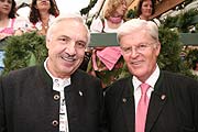 Anschliessend ging es für die geladenen Gäste, in diesem Jahr z.B. eine hochrangige Delegation aus Limpopo / Südafrika, oder William Hetzler (www.williamhetzler.com), der bekannteste deutschstämmige Amerikaner, Organisator der New Yorker Steubenparade (fand aktuell am Wochenende zuvor, am 15.09.2007 statt) und Chairman der GAMHOF (German American Hall of Fame www.gamhof.com), auf Einladung des Veranstalters, des Münchner Tourismusamtes, in die Ratsboxe auf der Empre des Schottenhamels, wo schon Promis und Politiker auf die Protagonisten des Anstiegs warteten. Dort saß man zusammen mit hochrangigen Politkern aus Landes und Kommunalebene, und durfte von oben herab dem Treiben im neubestuhlten Schottenhamelzelt zuschauen.