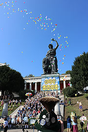 Standkonzert der Oktoberfestkapellen Sonntag, 30. September 2018, 11.00 Uhr, Bavaria auf der Theresienwiese Zu Füßen der Bavaria versammeln sich die Kapellen aller Festzelte zu einem Standkonzert. Bei dieser Veranstaltung, die fast schon Kultcharakter hat, interpretieren die rund 300 Musiker aller Kapellen gemeinsam unter der Leitung von prominenten Gastdirigenten bekannte Märsche und Melodien., bevor dann am Ende tausend bunte Luftballons den Himmel über der Bavaria verzieren.