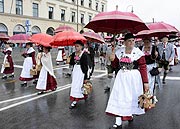 Ein Höhepunkt des Oktoberfestes, der schon seit 60 Jahren zelebriert wird, ist der Trachten- und Schützenzug zum Oktoberfest am ersten Wiesnsonntag, hier zeigt sich immer schön die Vielfalt von Brauchtum, Volksmusik und Volkstanz. Unter dem Motto "Alte Zünfte, Handwerk, Brauchtum, historische Feste" zogen am leider völlig verregneten Sonntag, den 18. September 2016, die rund 9.000 Trachtler, Sport- und Gebirgsschützen, Musikkapellen, historischen Trachtengruppen, Spielmanns- und Fanfarenzügen sowie bunten Fahnenschwingern des Zuges. Ihr Weg führte von der Maximiliansstraße durch die Münchner Innenstadt zum Oktoberfestplatz und zeigte die Vielfalt von Brauchtum, Volksmusik und Volkstanz. Viele deutsche Bundesländer sind mit Trachten- und Musikgruppen vertreten und nahmen ebenso wie Gästeaus vielen anderen Ländern, die am diesmal 7 km langen Kilometer langen Umzug teil.