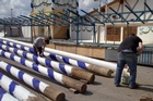 früh dieses jahr: die erste Schießbude wird aufgebaut / 040901wiesnaufbau04schiessbude.jpg (©Foto: Martin Schmitz)