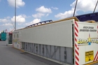 Biercontainer vor der Ochsenbraterei auf neuem Fundament / 040901wiesnaufbau02mobilfunk_antenne.jpg (©Foto: Martin Schmitz)