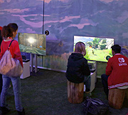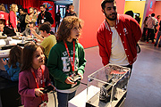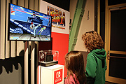 Auf den ersten Blick sieht es noch aus wie eine ganz normale Konsole, aber man kann das Mittelteil herausziehen und hält ein Gerät in der Hand, dass im Hand-Held Modus funktioniert und dem Nintendo Spieler den selben SpielSpaß auch unterwegs genießen läßt. Ein in die Konsole integrierter heller, 6,2 Zoll HD Bildschirm sorgt dabei für eine optimale Spielerfreude wie am Fernseher aber auch im Auto im Zug im Park oder bei einem anderen Nintendo Freund zu Hause. Rechts und links sind so genannte Joy-Con Controller an den Seiten der Konsole angebracht die sich von der Nintendo Switch auflösen lassen damit kann man unterschiedliche Spiel Kombination durchführen, ein Spieler zum Beispiel mit je einem Joy-Con-Controller in jeder Hand, zwei Spieler mit je einem oder viele Spieler mit mehreren Joy-Con-Controllern. Die Tische mit den Mario Kart 8 Deluxe Spielen waren natürlich gleich umlagert, doch die Wartezeiten warn kurz, da sämtliche Spielplätze sowohl vor dem Kesselhaus als auch noch einmal im Kesselhaus aufgebaut worden waren und aureichend Konsolen zur Verfügung standen. Während die Erwachsenen sich etwas schwer noch taten mit den doch etwas kleinen Joy-Con Controllern, hatten die Kinder ihren Spaß, vor allen in die Kleinste, mit Ihren acht Jahren sicher eher am unteren Rand der Angestrebten Zielgruppen für dieses Konsole. Was sie nicht daran hinderte, der Geschwister oder ihre Mutter bei den meisten Spielen locker zu schlagen. Vielleicht liegt es ja an den kleinen Händen die mit diesem kleinen Dingen gut zurecht kommen. "Es ist ja kinderleicht", meint dann auch die kleine Liya, die offenbar blitzschell begriffen hat, wie alles funktioniert.