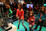 In der Minispielsammlung "1-2-Switch!" - erhältlich gleich zur Markteinführung des Nintendo Switch Konsolen am 03.03.2017 ebenfalls erhältlich - stecken diverse Games, die besonders für die neuen Joy-Con-Controller geeignet sind (49,99 Euro), vergleichbar in etwa mit dem "Wii Play" für die bisherigen Konsolen. Es sollen diverse Minispiele im Paket enthalten sein, von denen wir einige auf der Hand-On Veranstaltung von Nintendo im Münchner Kesselhaus auch ausprobieren konnten, wie zum Beispiel "Wettmelken", "Copy Dance", "Revolverhelden", oder "Samurai-Training". Dabei entfernt man einfach die Joy-Con-Controller von der Konsole, gibt einen davon seinem Mitspieler und los geht's! Wichtig: man muss seinen Gegenspieler dabei ansehen, nicht auf den Bildschirm. Dort gibts nach jedem Durchgang das Ergebnis. Wir haben Liya (8), Luan (11) und Luis (12) weiter die Runde durch die Halle machen lassen und die Games anspielen lassen, soweit deren Levels schon verfügbar waren. Wo zum Beispiel das Cartoon-Boxspiel "Arms", was wohl rund 70 € kosten wird (ab April erhältlich) , das höchst vergnügliche Tanzspiel "Just Dance 2017" wird ein Riesen-Spaß für die ganze Familie (kostet rund 60€, erhältlich ab 3.3.2017 zum Verkaufsstart). Die, die keinen Controller hatten, tanzten bei unserem Kurztest einfach mit.