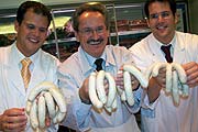 Dass ihm nichts in der Innenstadt Wurscht ist, zeigte Münchens OB Christian Ude bei der Wiedereröffnung des umgebauten Vinzenz Murr Filiale in der Rosenstraße am 26.10.2004. Der Umbau des „Flagschiffes“ der Münchner Vinzenz-Murr Gruppe hatte gerade einmal 15 Tage in Anspruch genommen. Die modernisierte Filiale ist die wahrscheinlich umsatzstärkste Metzgereifiliale Europas, aber das allein war nicht der Grund für den Besuch des Stadtoberhauptes, der am gleichen Tag auch noch Geburtstag feierte. Die Entwicklung der Münchner Innenstadt liegt Ude am Herzen, um deren pulsierendes Leben, die traumhafte Besucherfrequenz die Münchner so manch eine andere Stadt beneidet. Da freut es ihn, wenn ein so lange hier ansässiges Unternehmen wie Vinzenz Murr gegen den Trend der Einzelhandelsentwicklung als Metzgerei-Fachgeschäft mit hohem Personaleinsatz in der Innenstadt investiert und wächst, und erwähnt in diesem Zusammenhang auch andere aktuelle, privat finanzierten Maßnahmen. Der Rekonstruktion der Schrannenhalle aus dem 19. Jahrhundert neben dem Viktualienmarkt für gut 30 Mio. €, die Erweiterung des Karstadt Oberpollinger für über 50 Mio. €, die Rettung von Hettlage durch neue Investoren sowie die Aktivitäten von Kustermann am Viktualienmarkt zur Erhöhung der Attraktivität ihres Geschäftes seien nur einige Beispiele, wie rege sich die Innenstadt entwickle. Doch Ude war nicht nur zum Redenschwingen gekommen, sondern machte sich gleich nützlich als Verkäufer Münchner Weißwürste hinter der Theke, signierte sogar persönlich die Quittungen. Der gesamte Verkaufserlös ging zu Gute der Aktion "Arme Kinder". Das jetzt wiedereröffnete Gebäude in der Rosenstr. 7 wurde 1900 errichtet, 1929 wurde es von Rosa und Vinzenz Murr erworben. Das kurz vor Kriegsende total zerstörte Gebäude bauten Tochter Rosa und Schwiegersohn Karl Deuringer nach dem Krieg aus Ruinensteinen wieder auf. Laden und das Brotzeitstüberl waren schon damals bei den Münchner sehr beliebt, die BMW’s der Innenstadt Bäcker, Metzger und Wirte saßen hier gerne zusammen. 1988 wurde das gesamte Haus bis ins zweite Untergeschoß entkernt und von innen her neu aufgebaut, es blieb nur noch die Fassade stehen.. Das Geschäft in der Rosenstraße ist einzigartig, was sicherlich auch an der außergewöhnlichen Qualität der Produkte liegt, wie z.B. das Fleisch der Marke „Hofgut Schwaige“ aus kontrolliertem Anbau. Vinzenzmurr schuf sich außerdem durch ein patentiertes natürliches Reifeverfahren einen hervorragenden Ruf für besonders zartes Fleisch. Vinzenzmurr war dabei schon immer ein bedeutender Partner der regionalen Landwirtschaft. Rinder und Schweine werden fast ausschließlich aus der Region Oberbayern bezogen, absolute Frische garantiert tägliche Schlachtung auf dem Münchner Schlachthof. Im Restaurant werden täglich wechselnde Menüs, eine riesiges Salat- sowie Gemüsebuffet und natürlich die bekannt guten Traditionsschmankerl wie ofenfrischer Leberkäs, Schnitzel und Fleischplanzerl angeboten. Der Leberkäs wird übrigens täglich frühmorgens hergestellt, anschließend roh ausgeliefert und in den Filialen in Spezialöfen frisch mit der typischen Kruste gebacken. Inhaberin Evi Brandl: "Ich hoffe, das unser traditionelles Geschäft den Münchnern nach der Modernisierung gefällt und sie gerne zu uns kommen". vinzenzmurr Öffnungszeiten |