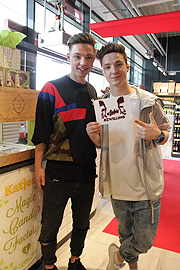 Mit dem HIT Markt kam der weltweit erste 3D-Drucker für Fruchtgummi, die Katjes Magic Candy Factory nach München und ist das innovative Highlight des neueröffneten HIT Supermarktes in Parsdorf bei München. Durch die Zusammenarbeit mit Hit sind die veganen und glutenfreien Fruchtgummis der Magic Candy Factory offiziell ab dem 7. Juli erstmalig in München erhältlich. Tags zuvor hatte man schon einmal einige Promis testen lassen, wie den so die Magic Candy Factory ankommt. U.a. mit Schauspielerin Christine Neubauer, dem Schauspieler Jimi Blue Ochsenknecht und zwei mit 16 Jahren schon gefeierte YouTube-Stars: Die beiden 16-jährigen Zwillingsbrüdern Heiko und Roman Lochmann, kurz DieLochis. Mit wöchentlichen Videos ihrer Sketche und Parodien aktueller Hits haben DieLochis eine große Fangemeinde erobert: am 06.07.2016 haben wir sie bei einer exklusiven Sneak-Preview des neuen HIT Markt in Parsdorf bei München getroffen, wo die Katjes Magic Candy Factory im 3D-Druckverfahren hergestellten Fruchtgummis herstellt, wie zum Beispiel eine Foto der beiden oder das kommende Plattencover des Albums, welches am 19.08.2016 auf den Markt kommt und Hashtag Zwilling "#Zwilling" heißen wird.