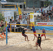 Bei den Herren sind die amtierenden Meister Max Hauser/Florian "Joschi" Schöberl wieder am Start, bei den Damen sind Michaela Henry/Sabine Schulz und im Mixed Verena Buchbinder/Thilo Backhaus favorisiert. Viele weitere Informationen zu Beachvolleyball in Bayern finden Sie unter www.bvv.volley.de und www.bvv-beach-cup.de. Die Strandbedingungen unter dem Dach des MAC sind aber auch für andere Sportarten bestens geeignet. So steht am Mittwoch, den 12. August 2009, erstmals die neue Trendsportart „Beach Tennis“ auf dem Programm. Wer mindestens 14 Jahre alt ist und schon einmal einen Tennisschläger in der Hand gehabt hat, kann diesen Freiluftsport jetzt am Münchner Flughafen einmal ausprobieren. Ab 08.00 Uhr heißt es nach einer Einführung im MAC-Forum „new balls, please“. Bei einem offenen Turnier, das um 10.00 Uhr beginnt, können die Teilnehmer zeigen, worauf es bei diesem Sport ankommt. Mitmachen können alle, die mindestens 14 Jahre alt sind und schon einmal einen Tennisschläger in der Hand gehabt haben. Weitere Informationen zum Beach Tennis Cup im MAC-Forum finden Sie unter www.dbtv.info. Speziell Anfängern des Beachvolleyballsports ist das Programm am Sonntag, den 16. August 2009 gewidmet: beim vierten "Family Day" (11:00 17:00 Uhr) führen Spielerinnen der "Roten Raben" dem aktuellen Vize-Meister in der Bundesliga der Damen von 13.00 Uhr bis 15.00 Uhr große und kleine Besucher in die hohe Kunst des Beachvolleyballs ein. Für die kleinen Sportler gibt es im Anschluss an das Kindertraining um 15.00 Uhr eine spannende Zaubershow. Auf die Nachwuchsathleten warten an diesem Tag außerdem Kletter- und Geschicklichkeitsspiele, Kinderbasteln sowie weitere sportliche Herausforderungen. Viel Spaß und Spannung garantiert der "B2Beach Cup", bei dem vom 10. bis 15. August 2009 bis zu 80 Firmen-Teams teilnehmen können. Jedes Team spielt an einem Abend alle vier Spiele der Vorrunde. Am Freitag findet eine Zwischenrunde für die Viert- und Fünftplatzierten der Vorrunde statt. Die besten Teams qualifizieren sich noch für das Finale am Samstag. Spielberechtigt sind alle, die das 18. Lebensjahr vollendet haben. Anmeldegebühr: 150,00 € zuzüglich 19 % MwSt. (100,00 € werden gespendet). Jedes Team erhält 6 Goody-Bags. Für die Verpflegung während des gesamten Turniers mit Obst und isotonischen Getränken ist gesorgt. Anmeldeschluss war am 04.08.2009. Der Besuch der Volleyball-Spiele ist kostenlos. Die Zuschauer haben überdies die Möglichkeit, ihr Fahrzeug bis zu fünf Stunden kostenlos im Parkhaus P20 abzustellen. Nähere Informationen zum Volleyball-Event können im Internet unter www.airport-beach.de abgerufen werden. - Startseite zum Flughafen Special - das Terminal 2 (weiter) |