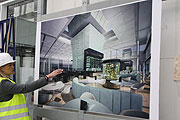 Erstmals konnte die Presse einen Eindruck gewinnen, wie es hier in ein paar Monaten zugehen wird. Zuvor gab es dazu eine 3D Visualisierung zu sehen, mit deren Hilfe in den letzten Monaten die FMG potentiellen Mietpartnern und Werbepartnern via Datenbrille einen sehr realistischen räumlichen Eindruck geben konnte. Das lichtdurchflutete Gebäude des neuen Satellitenterminals umfasst eine Fläche von über 125.000 qm. Auf über 600 Metern Länge und mehr als 50 Metern Breite werden zusätzlich 52 Gates und 27 Gebäudepositionen geschaffen. Den Passagieren stehen zwei neue Lufthansa Service Center, 42 Passkontrollstellen und 20 zusätzliche Sicherheitskontrollstellen zur Verfügung. Geboten wird den Fluggästen im Satellitenterminal künftig ein völlig neues Shopping- und Gastronomie-Erlebnis. Herzstück dieser Erlebniswelt wird der lichtdurchflutete zentrale „Marktplatz“ rund um den Vorfeldtower sein. In dem neuen Passagiergebäude werden sowohl nationale und internationale Premium-Marken als auch bekannte Namen aus dem bayerischen Einzelhandel und der heimischen Gastronomie präsentiert. „Bayerische Tradition und Gastfreundschaft, Münchner Lebensgefühl und das Zusammenspiel von Natur und moderner Technologie das sind die Leitgedanken bei der architektonischen Gestaltung des Gastronomie- und Shoppingbereichs“, so Rainer Beeck, Leiter Commercial Activities der FMG.