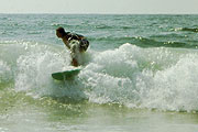 Hier war ich regelmässig bis in die 2. Hälfte der 90er Jahre fast jeden Sommer mit einem roten Wellenreiter am Strand zu finden. Sons of Sea Nachdem es früher praktisch nur die klassischen Wellenreiter, meist kalifornische oder hawaiianische Surfbretter auf den Wellen gabm, haben sich inzwischen auch andere Spielarten wie Bodyboards etc. an den Stränden breit gemacht. Ein Teil des Atlantikstrandes ist überwacht, doch sind weite Abschnitte des kilometerlkangen Strandes ohne oder nur temporär beaufsichtigt. Zu beachten ist neben dem mit zum Teil recht starkem Wellengang auch eine bisweilen extrem tückische Strömung, die bei bestimmten Gezeiten zeitweilig ziemlich hinaus in den Ozean zieht. Manchen Strandbesucher hat das schon das Leben gekostet hat, der sich auf einigen bei Ebbe vorgelagerten Sandbänken aufhielten und dann, als die Flut kam, den Weg zurück zum Strand nicht mehr schafften, da das Wasser dazwischen die (nun Schwimmer) quer zum Strand mit Tendenz nach außen hin zum Cap zog. Einheimische wissen, dass man in solch einem Fall versuchen sollte, einfach nur halbwegs die Distanz zum Ufer zu halten, aber nicht gegen den Seitendrift zu schwimmen (um die Höhe seines Strandabschnittes zu halten), da ein Stück später die Strömung wieder in Richtung Ufer zieht und es dort dann leichter ist, wieder festen Boden unter die Füße zu bekommen. Schilder am Strand und an den Aufgängen zeigen, wie die Strömung verläuft, aber wer denkt schon an so etwas, wenn er abtreibt.. Ich habe einen Sommer Anfang der 90er Jahre erlebt, an dem abseits des beaufsichtigten Strandes, gleich mehrere Badende innerhalb von zwei Wochen ertrunken sind. Mindestens einer Urlauber verdankte seinerzeit sein Leben nur meinem Wellenreiter-Brett, das ich spontan einem guten Schwimmer ausgeliehen hatte, der mit dessen Hilfe den Abgetriebenen von weiter draussen wieder ans Land zurückholen konnte, andere wurden mit dem Helikopter gerettet, der aber auch einen Ertrunkenen ans Land brachte. im Sommer 2010 starben 14 Personen an der Küste Aquitaniens, allesamt in nicht überwachten Zonen des Strandes. Am Plage de Grand-Crohot (überwacht vom Mitte Juni bis Mitte September) am Ozean im Norden von Cap Ferret wurde deshalb 2011 als neue Waffe der Maîtres Nageurs Sauveteurs (MNS) d'Aquitaine ein Jet Ski angeschafft, der mit einer speziellen Matte ausgestattet ist, auf der Gerettete herausgezogen werden können im Schlepptau des Jet Ski's. Der etwas südlicher gelegene Plage de L'Horizon und der Strand vom Le Truc Vert ebenfalls von Mitte Juni bis Mitte September. Ansonsten gilt: "Les vagues sont pour ceux qui se lèvent tôt" - den frühen Aufsteher belohnt die Welle.
