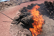 Die etwa 845 qkm große Insel Lanzarote ist zu drei Vierteln mit Lava bedeckt, ausgespieen aus mindestens 300 Kratern von etwa 100 Vulkanen. Das Eruptivmaterial der sechs Jahre dauernden Ausbrüche vom 1. September 1730 bis 16. April 1736 bedeckt etwa 167 qkm Lanzarotes. Der Timanfaya Nationalpark im Südwesten der Insel erstreckt sich über 51,07 qkm, von der Ortsgrenze Yaizas bis zum Montaña Timanfaya, die Westgrenze bildet die Küstenlinie. Hier entstanden damals 32 Vulkankegel. Diese Ausbrüche im 18. Jahrhundert waren, nicht nur wegen der großen Menge des ausgespieenen Materials, sondern auch wegen der langen Dauer, die bedeutendsten in der Geschichte des Vulkanismus. Zu den Ausbrüchen an Land kamen noch zahlreiche Seebeben. Die Virgen de los Volcanes stoppte 1736 den Lavafluss am Montaña de Guiguan und verschonte damit die umliegenden Dörfer, so glaubten es die Einheimischen, und versprachen, ihr eine Kapelle zu bauen. Erst im Jahre 1781 konnte die bettelarme Bevölkerung die kleine Kapelle Nuestra Señora de los Volcanes in Mancha Blanca fertigstellen. Als das Gebiet bei den nächsten Vulkanausbrüchen im Jahre 1824 erneut verschont blieb, interpretierte man dies als Wiederholung des Wunders. Die Marienfigur, die zuvor in der Kirche in Tinajo untergebracht war, erhielt 1862 ihren endgültigen Standort in der Kapelle Nuestra Señora de los Volcanes. Der Nationalpark ist über gut asphaltierte Straßen zu erreichen. Sie wurden 1950 zum Besuch General Francos angelegt. Am beeindruckendsten ist sicherlich eine geführte Tour durch den Park. Die Führung in Gruppen von maximal 8 Personen ist kostenlos durch die Parkverwaltung, allerdings an eine Reihe von Reglementierungen gebunden. So muss man sich für die Vulkanwanderung vorher anmelden unter Angabe der Personalausweis- oder Passnummer (Anmeldung unter Tel.: +34 928 84 08 39 oder hier). Die englisch oder spanisch geführte mehrstündige Tour beginnt am Besucherzentrum „Mancha Blancha“. Da es am Tag nur rund 50 Personen gibt, die (neben Schulklassen von der Insel und Fachgruppen wie z.B. Vulkanologen) an den wenigen Führungen teilnehmen können, muß und sollte man sich bereits Wochen, wenn nicht schon Monate vor seinem Wunschtermin anmelden. Bei der Wandertour sollte auf gutes, festes Schuhwerk und zweckmäßige Kleidung geachtet werden, auch sollte genügend Wasser mitgeführt werden. Fotografieren oder Filmen ist leider nicht erlaubt, zumindest nicht, wenn man daran denkt, auch andere an den Bildern teilhaben zu lassen (also Veröffentlichungen im Netz oder in Büchern, Diavorträge etc.). Man ist hier im Nationalpark immer noch verärgert über ein deutsches Paar, das mehrere Jahre hintereinander herkam, fotografierte und dann sehr erfolgreich einen Kalender veröffentlichte. Auch das Mitnehmen von Pflanzen, Tieren oder Steinen im Nationalpark Timanfaya ist verboten: wenn jeder der Touristen auch nur einen Stein mitnehmen würde, kämen da im Jahr schnell 20 Tonnen Natur zusammen, die dann fehle, rechnet Nino, unser englischsprachiger Guide auf der Tour. Umgekehrt dürfen auch keine Tiere und Pflanzen eingeführt werden, um das ökologische Gleichgewicht nicht zu stören. Bei der Führung erlebt man hier abseits der touristischen Trampepfade des Nationalparks Natur pur. Eine völlige Stille, die durch das geräuschabsorbierende Balastgestein noch einmal verstärkt wird. Nino vermittelte uns bei der Vulkanwanderung Respekt vor der Natur teils mit spielerischen Einschüben für die Vulkanwanderer an markanten Stellen der Route. Er weiß, wie man mit ein paar Wasserspritzern aufs Gestein Eidechsen anlocken kann, die dann sogar aus der Hand trinken, man lernt über die der Natur angepasste verminderte Vermehrungsfreudigkeit der hier ansässigen Kaninchen (meist nur 1 bis 2 Junge pro Wurf), freut sich über die vulkanische Variante von Grashüpfern und auch die hin und wieder präsenten Wachteln scheinen zu wissen, dass sie hier nicht gejagt werden dürfen und marschieren über die unberührten Aschefelder. Die Natur vergisst hier nichts, noch immer kann man Reifenspuren an manchen stellen sehen, die schon vor 45 Jahren entstanden sind. Darum ist es auch zum Schutz der empfindlichen Pioniervegetation nicht erlaubt, von den Wegen abzuweichen. Auf die Tour läßt man nur Erwachsene, für Kinder wird es schnell zu langweilig. Die Kinder lassen sich mehr begeistern durch die 20-minütige Touren auf Dromedaren, Touren, die zwischen 9-14 Uhr von einem großen Parkplatz aus, dem "Circus", wie es Nino scherzhaft nannte, starten und gemächlich über die Landschaft führen. Nachmittags ist in der Hochsaison meist weniger Andrang, am Vormittag muß man bisweilen auf die nächste Karawane warten (kosten um die 10 €/ Erwachsene) Eine 14 Kilometer lange Rundfahrt kann nur per Bus unternommen werden. Am Islote de Hilario starten die Busse etwa alle halbe Stunde auf eine 45-minütige Rundfahrt durch den Nationalpark. Bei der Bustour auf der Vulkanroute Ruta de los Volcanos sollten sie versuchen, einen Platz auf der rechten Seite des Busse zu bekommen, da die Busse ihre ca 35-45 minütige Tour in einer Art langen Linksschleife absolvieren. Links sehen sie allerdings besser, wenn man durch den Vulkan fährt. Von dem 350 Meter hoch gelegenen Montaña Rajada erhält man einen Überblick über den größten Teil des Timanfaya-Nationalparks. Das große Areal, das heute das Lavameer einnimmt, gehörte vor den Ausbrüchen zum fruchtbarsten Teil Lanzarotes. Nach der Katastrophe lag die unglaubliche Menge von acht Millionen Kubikmetern Lava dort, wo zuvor kleine Ortschaften und einzelne Gehöfte existiert hatten; insgesamt wurden etwa 420 Häuser zerstört. Die zerstörten Dörfer waren Timanfaya, Los Rodeos, Mancha Blanca, Santa Catalina, Mazo, Jarretas, Tingafa, Peña Palomas, Testeina, La Geria, Macintafe, Mozaga, Guagaro, Masdache und Iguadén, außerdem die Landgüter von Maretas und Chupaderos. Die Vulkane, die den Timanfaya-Nationalpark bil