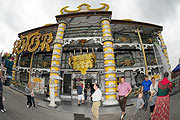 Denn auch beim diesjährigen Dachauer Volksfest vom 09.-18. August 2008 liegt der Bierpreis 2008 wieder sensationell niedrig bei 4,40 Euro (wie auch schon im Vorjahr). Zum Münchner Oktoberfest haben die Preise für eine Maß Bier die 8 Euro Grenze schon lange überschritten. Das Dachauer Volksfest findet jedes Jahr 10 Tage im August von einem Samstag (i.d.R. der 2. Samstag im Monat) bis zum übernächsten Montag statt, dabei ist der Feiertag Maria Himmelfahrt stets eingeschlossen. Auf der inmitten der Stadt unterhalb der herrlichen Altstadtsilhouette gelegenen Festwiese werden insgesamt über 70 Schausteller, darunter um die 9 Fahrgeschäfte und 25 Imbissgeschäfte eine echt altbayerische Wies´n-Stimmung garantieren. Für das leibliche Wohl sorgen die Festzelte, das große Festzelt mit 3.850 Plätzen von Stefan und Renate Eisenreich (von der Gaststätte "Kochwirt"), der Franziskaner Garten von Martin Völkl und Ralf Rudorfer mit erstmals überdachtem Biergarten (dessen Dichtigkeit sich bei gelegentlichem Regen am Eröffnungstag erwies - insg. 950 Plätze), sowie Schweiger's Schmankerlzelt, (www.festzeltbetrieb-schweiger.de) mit 1.200 Plätzen. Jeden Abend Partytime mit DJ liefert die 400 Plätze bietende Garten-Cocktailbar Original Bier - Schmankerl - Cocktailbar von Christian Naumann (www.cafe-original-online.de), und auch im Niagara Partyzelt (www.niagara.de) lässt man es auf 600 Plätzen partymässig so richtig krachen (Happy Hour von 13-19 Uhr: p.P. gibt es viele Biere und Softdrinks in der 0,3 bzw. 0,5 l-Flasche zu 2,50€). Backfrische Waffeln, Krapfen, schmackhafte Dampfnudeln, die Auszogenen und viele andere Leckereien gibt es in Krems "Die Kleine Backstube". Café, Wein und Cocktails gibt es in Hermann's Strudel Alm (die mit der Kuh auf dem Logo). Steckerlfisch gibts seit vielen Jahren von der Familie Eckart. Ausgeschenkt wird in Dachau in den 5 Zelten übrigens Bier von der Spatenbrauerei. Auch das von der Schlossberg Brauerei stammt eigentlich von Spaten. So geht es also auch. Der neidige Preis ist denn auch das Hauptargument, die Zelte zu füllen, weniger als auf anderen Volksfesten brauchen hier bekannte Bands und Kapellen im Zelt die Leute anlocken. Spitzen Musik gibt es trotzdem: so treten u.a. bekannte Kapellen im Unterhaltungsprogramm des großen Festzeltes auf. Am 09. August 2008 (Samstag) war es wieder soweit. Traditionell wurde der Festzug in Dachau angeführt von einem Vorreiter. Seit 10 Jahren übernimmt dies Irmi Lachner, Tochter des Volksfestwirtes von 1968, Vitus Lachner. So zog ab 11.45 Uhr ein farbenprächtiger Zug vom Rathaus zum Volksfest auf der Ludwig-Thoma-Wiese, mit dabei sind mehrere Kutschen mit Honoratioren von Stadt und Land sowie der Festwirte, gefolgt von Blasmusik, Trachten d’Ampertaler (www.ampertaler.de) und vielen anderen mehr. Von hier aus traten auch die Böllerschützen vor dem Schloss an zum Salutschiessen.. Dachaus Oberbürgermeister Peter Bürgel stach anschliessend gegen 12 Uhr mit einem "spitzigen" und zwei absichernden Schlägen das erste Fass Festbier an und eröffnete damit das Dachauer Volksfest auf traditionelle Weise. Erst 2007 war das Anzapfen von 14 auf 12 Uhr vorverlegt worden, und so wird es künftig beibehalten: O’zapft is! Mit beim Anstich im großen Festzelt dabei waren u.a. eine Delegation der italienischen Partnerstadt Dachaus, Fondi (www.cittafondi.it), unter der Leitung von Bürgermeister Sindaco Luigi Parisella, der Dachauer Landrat Hansjörg Christmann (CSU) und Spaten Brauerei Boss Günter Kador, der im Gespräch mit uns darauf verwies, dass die günstigen Preis in Dachau natürlich auch nur im Zusammenspiel aller zustande kommen können. Auf der Wiesn wäre so ein Bierpreis undenkbar, alleine schon die Infrastrukturkosten sind auf der Theresienwiese um ein mehrfaches höher als in Dachau, schon was allein die Zeltkonstruktonen betrifft. - Dachauer Volksfest 2008 - das Programm (weiter) Neben dem Bier gibt es natürlich auch viele andere Attraktionen zu bestaunen. Wichtig ist der Stadt Dachau auch dieses Jahr, dass für alle Interessen- und Altersgruppen etwas dabei ist. So gibt es zum Beispiel allein für die Kinder ein halbes Dutzend liebevoll gestaltete Fahrgeschäfte und Belustigungsbuden, wie Trollmann's Kasperl-Theater, der Orient Zauber von Diebold-Zierer, eine Super 8 Kinderschleife, Tille's Jumbo Flug mit dem beliebten sprechenden Elephant oder Kaisers Reitbahn. Für die Jugend und "Junggebliebenen" werden einige sehr rasante, hochaktuelle Fahrgeschäfte angeboten.Vergnügen sie sich hier schon in Dachau mit tollen Fahrgeschäften u.v.a.m. dem 40 Meter hohen "Goldenwheel" Riesenrad von Jost, von dem aus man das ganze Fest überschauen kann, einem Polyp "Octopussy" von der Schaustellerfamilie Markmann & Söhne , Aigners Wiesn Fahrgeschäft Insider, (gibt als "Senator" Ticket über 66jährigen 50% Preisnachlass), schwerkraftüberwienden Pluschie's Rotor, Distels Rundfahrgeschäft für die ganze Familie "Die Petersburger Schlittenfahrt" , ein Top Spin, ein Simulator sowie der Autoscooter Diebold Super Scooter, gegenüber dem großen Festzelt. Wer es lieber klassisch mag, findet etwas von der "guten alten Zeit" an den traditionellen "Standln". Da gibt es u.a. eine Schiffschaukel von Ringer-Pötzsch mit Rundschaukel auf dem Platz, eine weitere Schiffschaukel von Russenrad Betreiber Herbert Koppenhofer, die mit historischer Konzertorgel daherkommt (die Musik kann man auf CD an der Kasse erwerben). Für die Kinder gibt es am Kindertag (12. August) viel Spaß bei ermäßigten Preisen. Ein besonderes Erlebnis verspricht auch das traditionelle Volksfestfeuerwerk am 13.08.2007, gegen 21.30 Uhr. Circa zwanzig Minuten zieht das Feuerwerk dann Tausende von Schaulustigen in seinen Bann und setzt den glanzvollen Höhepunkt an diesem Abend. Vom hoch oberhalb des Volkfestplatzes gelegenen Schlossgarten aus abgeschossen, weit über den Köpfen der Festbesucher, die sich am besten Plätze zwischen Bäumen für einen optim