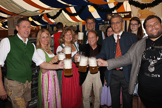 Fotogalerie Eröffnung Lohhofer Volksfest 2018, Teil 1, 2, 3, 4, 5, 6, (©Fotos: Martin Schmitz) Der erste Anstich findet nach alter Tradition am Freitag, 07.06.2019 um 18 Uhr im Festzelt statt. Unterschließheims Erster Bürgermeister Christoph Böck zapft das Fass vom klassischen Festbier der Brauerei Wimmer an und eröffnete damit das Fest. Ab Mittwoch, 12. Juni 2019 wird das Festbier wieder aus Unterschleißheim kommen. Der zweite Anstich findet am 12. Juni 2019 um 13:00 Uhr statt. Ab dann wird das von der Brauerei Crew Republic gebraute klassische helle Festbier ausgeschenkt. Heuer gibt es 4 Biersorten: diese stammen von der Brauerei Wimmer, Crew Republic, Augustiner und Remonte Bräu Schleißheim In der MONACOS SCHANKBAR kommen erstmals auch Weingenießer auf ihre Kosten. Der Ochs hat Premiere! Er wird am Sonntag die Gaumen erfreuen. Am Samstag, den 08. Juni 2019 zieht der große Festzug wieder durch die Stadt. Er startet um 14.00 Uhr am Rathausplatz bis hin zum Volksfestplatz, wie immer mit allerlei musikalischer und unterhaltsamer Begleitung von verschiedensten Kapellen und Vereinen. Eingeladen werden örtliche Vereine und Organisationen. Um 13:45 Uhr geben die Schützenkompanie Unterschleißheim Böllerschüsse ab. Der Festzug startet um 14.00 Uhr am Rathausplatz und geht über Raiffeisenstraße, Bezirksstraße, Alleestraße, und Margaretenanger direkt zum Volksfestplatz und in das Festzelt. Die Ankunft auf dem Volksfestplatz ist geplant um ca. 15.00 Uhr. Auf den Platz stehen (2019) u.a. der Mondlift, der Bayernlift, ein Kettenkarussell, sowie ein Autoscooter. Am Mittwoch, 07.06.2019 wird zum Seniorentanz eingeladen! Für die Senioren gibt es heuer die Möglichkeit in der Alm zu tanzen. Am Pfingstmontag 10.06.2019 findet um 11:00 Uhr im Zelt ein Festgottesdienst statt. Der ökumenische Gottesdienst wird von Pfarrer Johannes Streitberger sowie der Vertretungspfarrerin an der Genezarethkirche, Christiane Döring, zusammen mit Untermalung der RoGoPops gestaltet und geleitet. Am Kindertag gibt es eine kostenlose Himmelfahrt. Mit einem Kran geht es hoch hinauf! Wie es sich für ein gutes Volksfest gehört, gibt es natürlich auch auf dem Lohhofer Volksfest einen Tag, an dem Familien mit Kindern voll auf ihre Kosten kommen. Der Kindertag wurde 2019 vorverlegt vom Freitag auf den Dienstag 11.06.2019. (Am Freitag kamen die Besucher vermehrt erst ab ca. 16:30. Also war der Freitag als Kindertag nur für einige Wenige ein spezieller Anreiz.) Um 14:00 Uhr steigt an diesem Tag dann die Kinderdisco! Alle Teenies sind dazu herzlich eingeladen. Der Eintritt ist frei! Wenn es am 13.06.2019 Nacht wird, wird der Himmel zur Bühne für ein magisches Schauspiel. Die Farben, Formen und Geräusche des Feuerwerkes faszinieren die Menschen seit Jahrhunderten. Das Lohhofer Musikfeuerwerk ist etwas ganz Besonderes. Die Raketen werden eigens für dieses Fest ausgesucht und passend zur Musik zusammengestellt. Für ide Besucher bleibt nur eins zu tun, auf´s Volksfest gehen und die Show vom großen XXL-Feuerwerk genießen. Bei schlechtem Wetter: Ausweichtermin 15.06.2019 Der MVV fährt dieses Jahr die Strecke S-Bahn Festplatz länger! (aber nicht öfter, der Fahrplan wurde dazu etwas verlängert). Diese Accessoires sind erhältlich: Terminplan: Sonntag: Ochs am Spieß (Festzelt) Montag: 11:00 Festzelt-Gottesdienst, Bandltänze Dienstag: Kindertag Mittwoch: Seniorennachmittag + Tag für Menschen mit Behinderung; Donnerstag: Musik-Feuerwerk Alle Informationen zu unserm Programm erhalten Sie auf der neuen Volksfest-Homepage unter: www.lohhofer-volksfest.bayern. Darüber hinaus lässt das große Angebot an kulinarischen Schmankerln des der Festzeltbetrieb Burkhard Greiner sicher keine Wünsche offen. 2019 gibt es auch wieder einen Mittagstisch im Festzelt! Eine 2018 erstmals neue Fischbraterei wird jedoch einen leckeren Steckerlfisch für die Gäste braten. Gepflegtes Bier der Brauerei Wimmer, Bruckberg ist im Ausschank. Die Maß kostet in diesem Jahr 8,20 Euro und ein 1/2 Hendl 8,90 Euro. (2018)