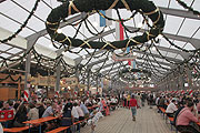 Aufwändige Dekoration mit traditionellen Kränzen und Bildertafeln kennzeichnen das Zelt, welches das größte freistehende seiner Art in Europa sein soll. Die Gesamtkapazität von 8600 Sitzplätzen ist schon beachtlich. Das Bier im Ausschank, das süffige Flötzinger Wies´n-Märzen, wurde 2007 prämiert mit der DLG-Goldmedaille. Neu ist im Jahr 2009 ein drittes Cabrio-Dach zwischen Küche und Musikbühne. Nachdem sich die beiden Cabrio-Dächer im Balkonbereich in den letzten Jahren sehr gut bewährt haben, wird nun auch im Bereich zwischen Küche und Musikbühne eine weitere Verbesserung der Durchlüftung erreicht. Die kleinen Wies´n-Besucher dürfen sich freuen: Täglich bis 18:00 Uhr gibt es Kinder-Essen mit Überraschung. Dezente Musik zur Mittagszeit gibt es auch jeden Mittwoch. Wechselnde Kapellen spielen somit montags, mittwochs, freitags und sonntags jeweils von 11:30 Uhr bis 14:30 Uhr. Seit 1950 unterhält die Dreder Musi die Gäste des Festzeltes der Flötzinger Brauerei, aktuell täglich von 15.00 Uhr (Sa./So. 14.00 Uhr) bis 23.00 Uhr. Das musikalische Repertoire reicht hierbei von der traditionellen bayerisch-böhmischen Blasmusik bis zu den aktuellen Schlagern und Hits. Doch wenn die Sonne scheint, zieht es die Leute in die Biergärten der Zelte. Festwirt des Flötzinger-Zeltes ist Manfred Kirner. Programm im Flötzinger Festzelt 2009 29.08.2009, Samstag 14:45 Traditioneller Wiesenbieranstich im Flötzinger Festbierzelt mit OB Frau Bauer Sonntag, 30.08. Montag, 31.08. Dienstag, 01.09. Mittwoch, 02.09. Donnerstag, 03.09. Freitag, 04.09. Samstag, 05.09. Sonntag, 06.09. Montag, 07.09. Dienstag, 08.09. Mittwoch, 09.09. Donnerstag, 10.09. Freitag, 11.09. Samstag, 12.09. Sonntag, 13.09. Programm der übrigen Tage (weiter) Täglich Unterhaltungs- und Stimmungsmusik mit der Dreder Musik und Kapellmeister Roland Merk - Startseite Herbstfest Rosenheim auf ganz-muenchen.de (mehr) Das Herbstfest Rosenheim im Internet: www.herbstfest-rosenheim.de |