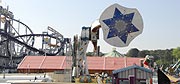 Die atemberaubende Mixtur der Bewegungsabläufe und deren Einwirkungen auf die nach außen blickenden Fahrgäste ist ungewohnt und neu. Der Passagier befindet sich im permanenten Wechsel in aufrechter, seitlicher oder Überkopfposition und ist dabei äußerst rasanten Rotationen in allen drei Dimensionen unterworfen. Aufreizend langsame Kopfstände auf allen Höhenniveaus setzen unbedingtes Vertrauen in den hohen Sicherheitsstandard der Haltebügel voraus. Rundherum ist der Flying Circus ein extrem attraktives und nervenkitzelndes Fahrgeschäft. Einmal in den Gondeln in luftiger Höhe von zwanzig Metern gesessen, die Rotation, die Beschleunigung, den gesteuerten Fall gespürt, unvergesslich und einmalig. Vom Fahrgefühl her ist das Ganze trotz allem dank seiner sanften, nicht ruckartigen Bewegungen "magenfreundlicher", als man denkt. Wenn es mulmig wird ein Trick: einfach eine festen Punkt anvisieren, dann beruht sich alles. Wenn sie natürlich allles von der Fahrt mitnehmen wollen, den Kopf nach rechts und links drehen, um alles zu sehen, kann das dann schon zum Magenkitzler werden. Noch ein nützlicher Tipp: Sie sollten immer daran denken, im Flying Circus die Taschen fest verschlossen zu haben, kopfüber hängend ging hier schon manches Händy über Bord. Dabei hat der Schausteller Erfahrungswerte bezüglich der Haltbarkeit von der "Fallhandys" entwickelt: Nokias halten schon was aus, Siemens Geräte sind meist mehrteilig, wenn sie mal abstürzen. Besser, sie schauen vorher nach, ob sie locker sitzende Gegenstände in Ihren Taschen wie Münzen, Schlüssel etc. nicht gleich herausnehmen oder in Taschen verschliessen. Sie können Ihre Taschen auch unten stehen lassen oder Freunden überlassen, in Aufbewahrung genommen werden kann während der Fahrt leider nichts. Eine absolute Neuheit, in der sie nach rund vier bis fünf Minuten dann doch eine Menge erlebt haben, feuchte Hände und fliegende Röcke. Fazit: Mit einer Flughöhe von 20 Metern und einem geradezu sensationell sich ständig veränderndem Fahrprogramm mit Multi-Bewegungseffekt zweier rotierender Arme, eine Volksfestspezialität für starke Nerven! Anschließend ist der Flyin Cirus zu sehen auf dem Oktoberfest 2007 (weiter) Technische Daten: Baujahr: 1996/97 Internet: www.barth-schausteller.de/Flying.htm Die Attraktion wurde übrigens 1997 von der Herstellerfirma Wagner-Biró aus Österreich realisiert, die auch auf normalen Baustellen Spektakuläres erbaute und häufig dafür ausgezeichnet wurde, wie z.B. mit dem European Steel Design Award 1999 für die Reichstagskuppel Berlin oder 2003 für die Überdachung des Queen Elizabeth II. Great Court im British Museum, London. Auch an der Überdachung der Olympia Sportstätten in München hatte die Hersteller-Firma 1969 ihren Anteil... |