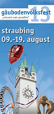 Das 201. Gäubodenvolksfest Straubing (09. bis 18. August 2013) ist für seine einmalig heitere und deshalb unverwechselbare Atmosphäre in ganz Süddeutschland bekannt. Der große Vergnügungspark, sechs Festzelte und neuer Erlebnis-Gastronomie, die interessante Verbrauchermesse Ostbayernschau (10. bis 18. August 2013) mit freiem Eintritt und das vielfältige Rahmenprogramm ziehen jährlich weit über eine Million Besucher an. Der Bierpreis 2013 liegt beo 8,10 EUR, um 20 Cent erhöht gegenüber dem Vorjahr. Mit dabei in 2013 das Amazonas (ersztmals in Straubing), Playball, Break Dance, Rocket, Psychodelic, die XXL Schaukel Konga, das Rundfahrgeschäft High Impress, eine Geisterbahn, das Hollywood Fun House, der Power Tower 2, Top Spin, die Wildwasserbahn "Auf Manitous Spuren", ein 50 m Riesenrad, Feuer & Eis, der Mini Autoscooter Crazy Time 2, Wellenflieger und Happy Monster, Autoscooter, dazu traditiionelle Vergnügungen wie Vogelpfeifer, Hoffotograph, Hau den Lukas, Schiffschaukel und Schnellportrait Zeichner. Eine Besonderheit ist wieder der historische Bereich mit einem klassischen Festzelt und alten Fahrgeschäften, wie dem Rally Monte Carlo, Looping the Loop, Hexenschaukel, Toboggan - einer langen, geschwungenen Holzrutsche, dem Kristall Palast, einem historischen Holz Riesenrad, und der Berg- und Tal Bahn Fahrt ins Paradies...