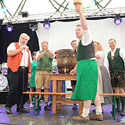 Das im Festzelt von Festwirt Edmund Radlinger angebotene Augustiner-Bier wird beim Unterhachinger Bürgerfest ausgeschenkt aus dem so genannten Hirschen, einem 200-Liter-Bierfass.